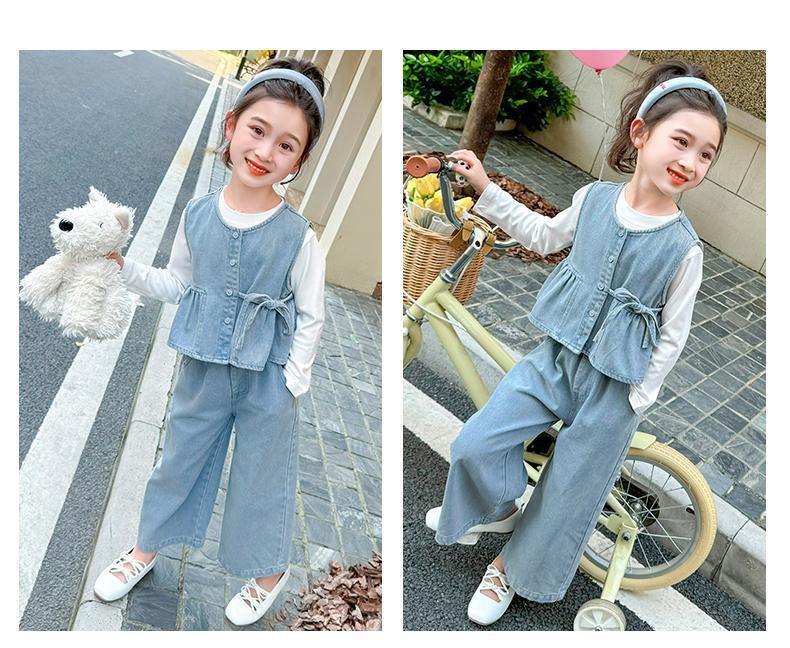 소녀 데님 세트 2024 새로운 세련된 초가을 소녀 아기 어린이 가을 투피스 세트스토어 가기