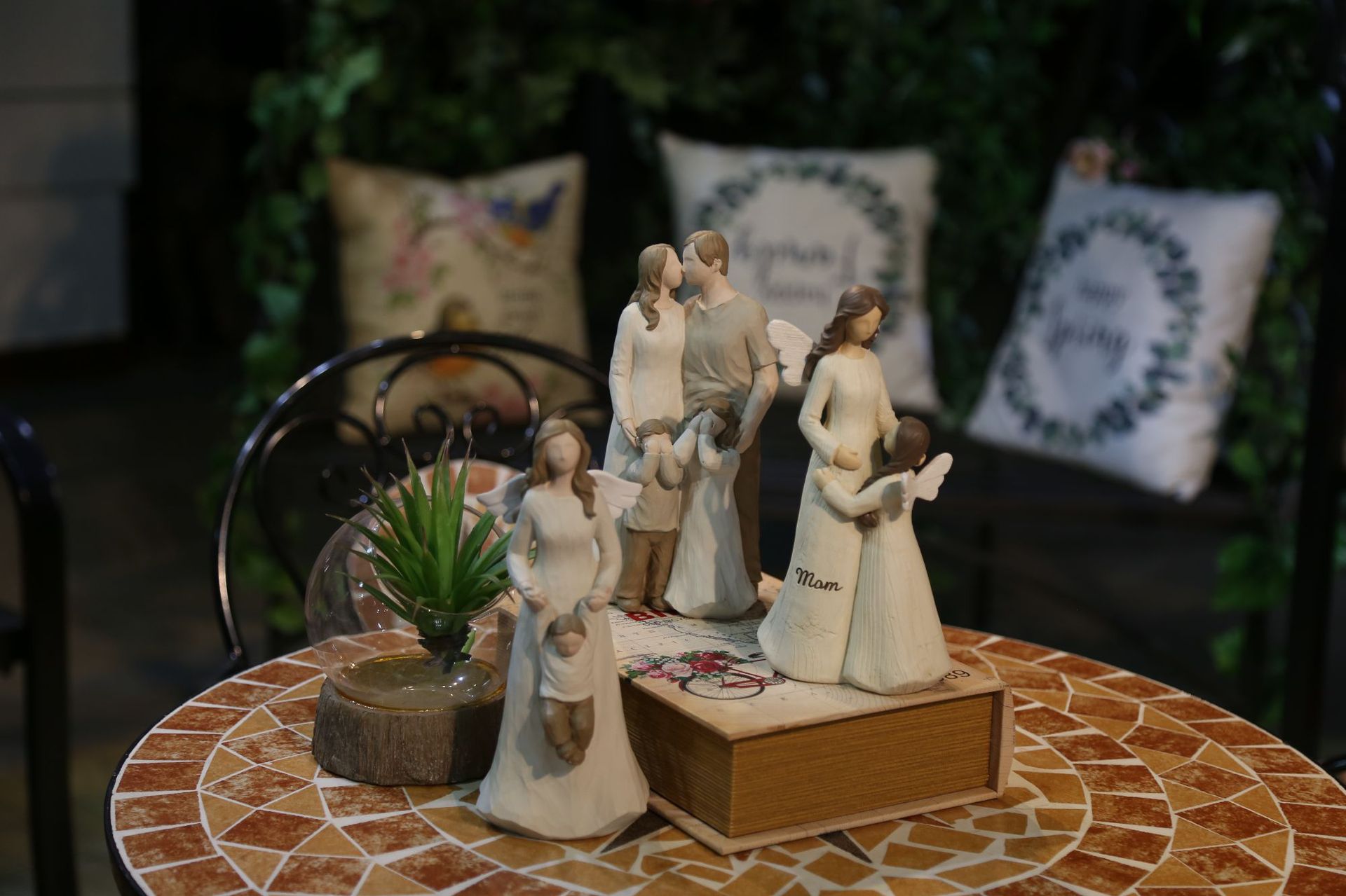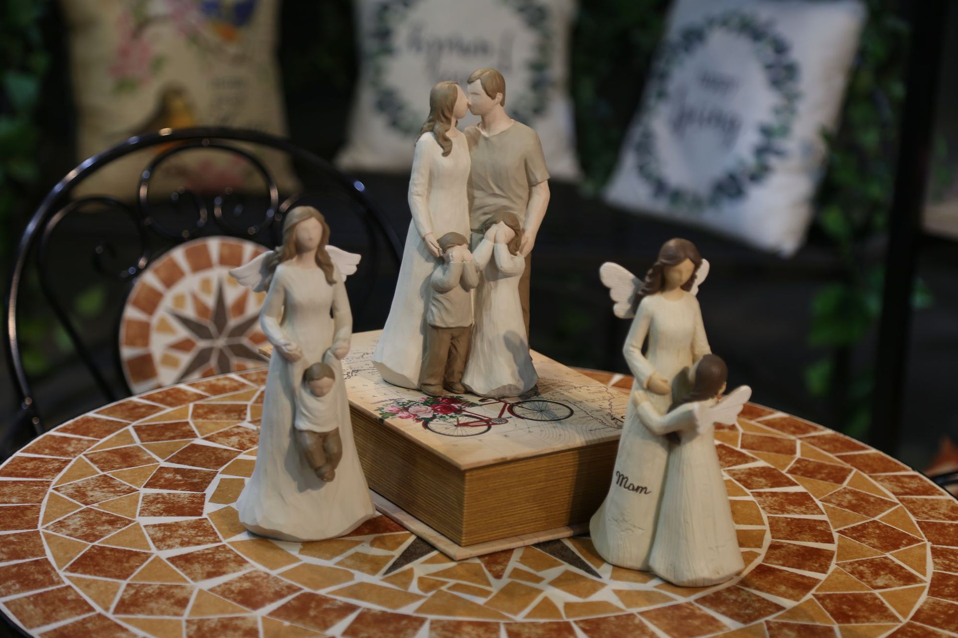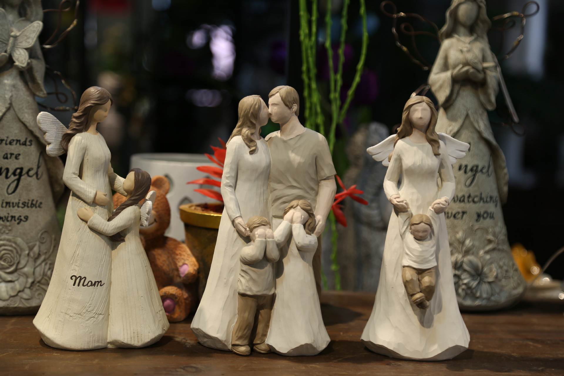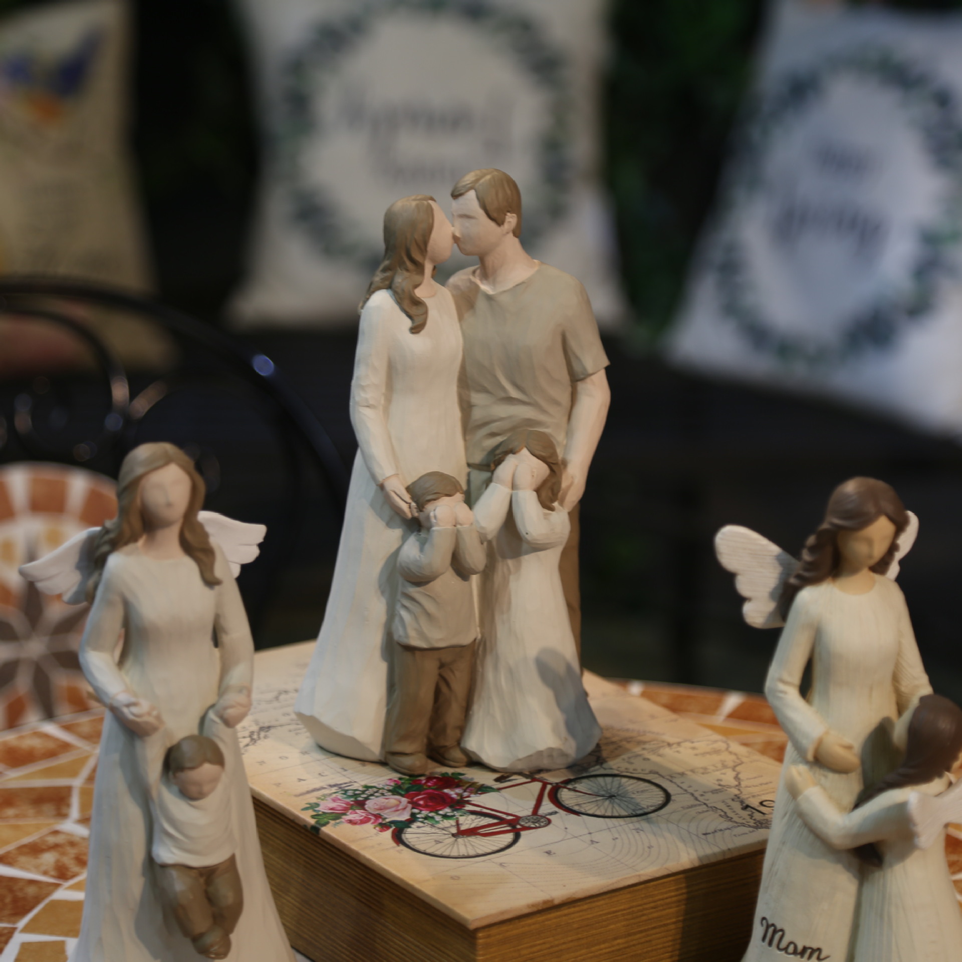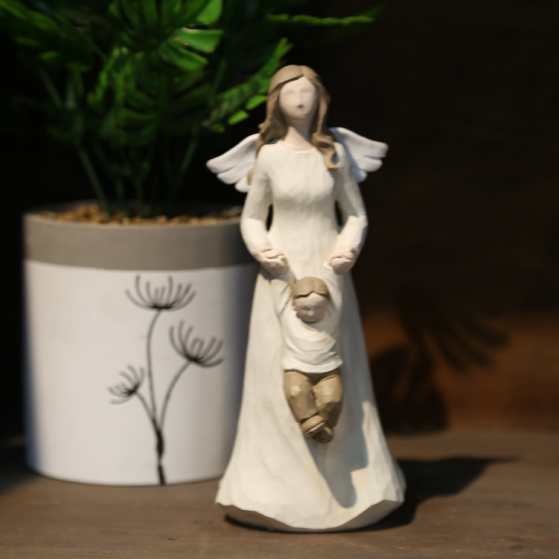 유럽 어머니의 날 발렌타인 데이 수지 모방 목재 효과 천사 커플 가족 거실 바탕 화면 장식스토어 가기