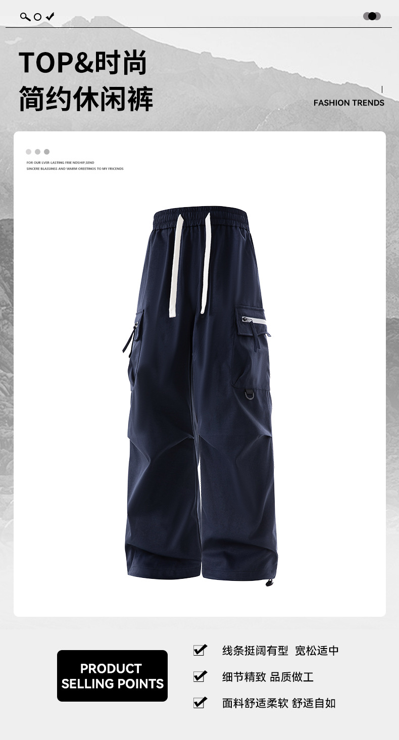 작업복 남성 봄과 가을 새로운 일본 스타일 솔리드 컬러 느슨한 스트레이트 트렌디 브랜드 멀티 포켓 캐주얼 올 매치 스포츠 바지
