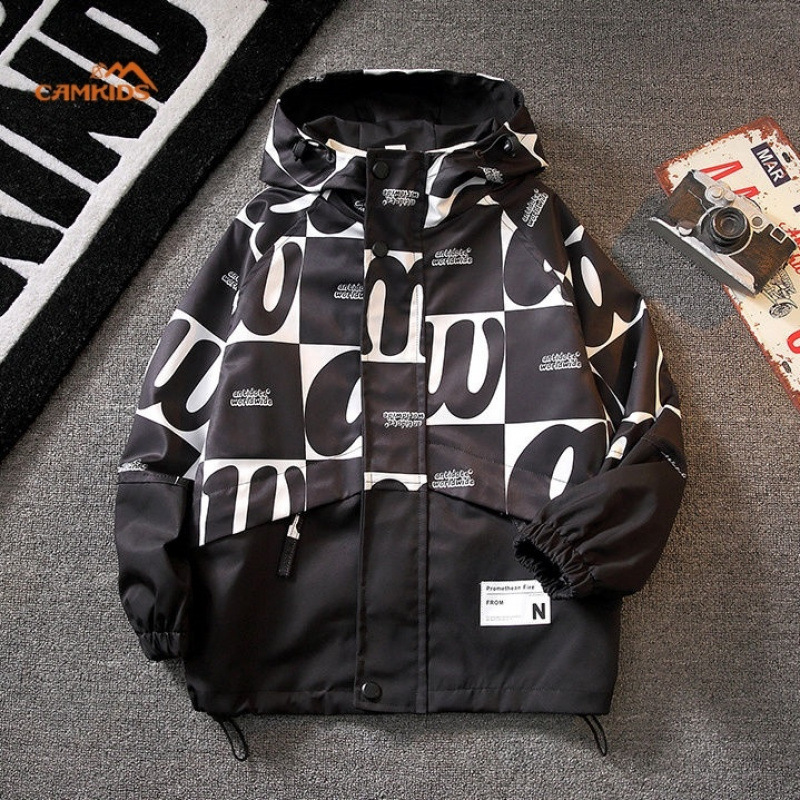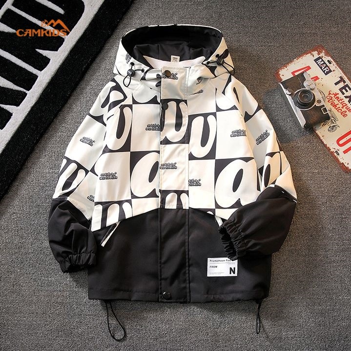 CAMKIDS 보이즈 코트 2024 새로운 중첩 소년 봄과 가을 후드 탑 스포츠 한국 스타일 소박한 옷스토어 가기