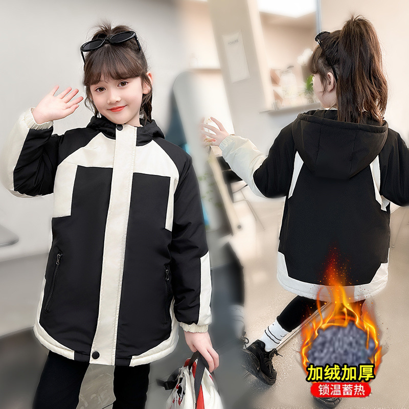 • 흑백 여아 플러스 플리스 코튼 재킷
