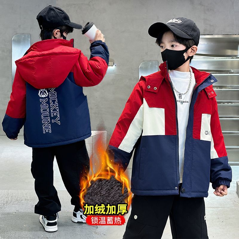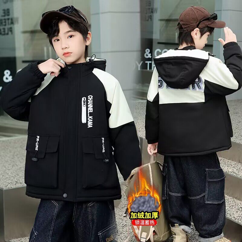 남학생의 겨울 2024 기모 면 패딩 코트 새로운면 패딩 코트, 두꺼운 소년의 어린이 면화 패딩 코트 극복스토어 가기
