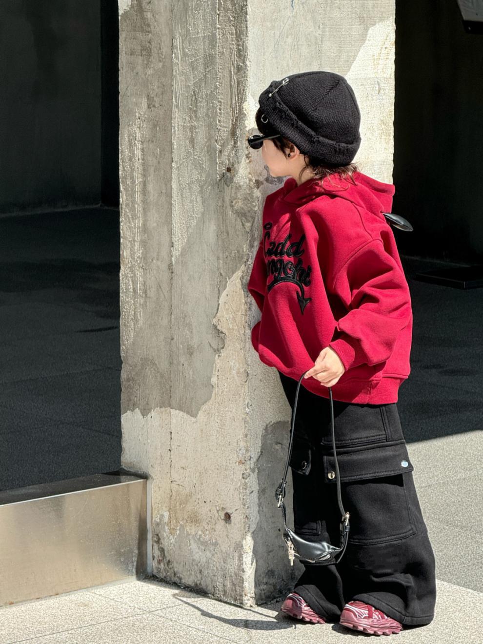 • 작은 악마 후드 스웨트셔츠 + 포켓 캐주얼 블랙 팬츠
