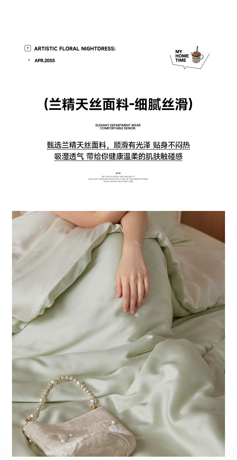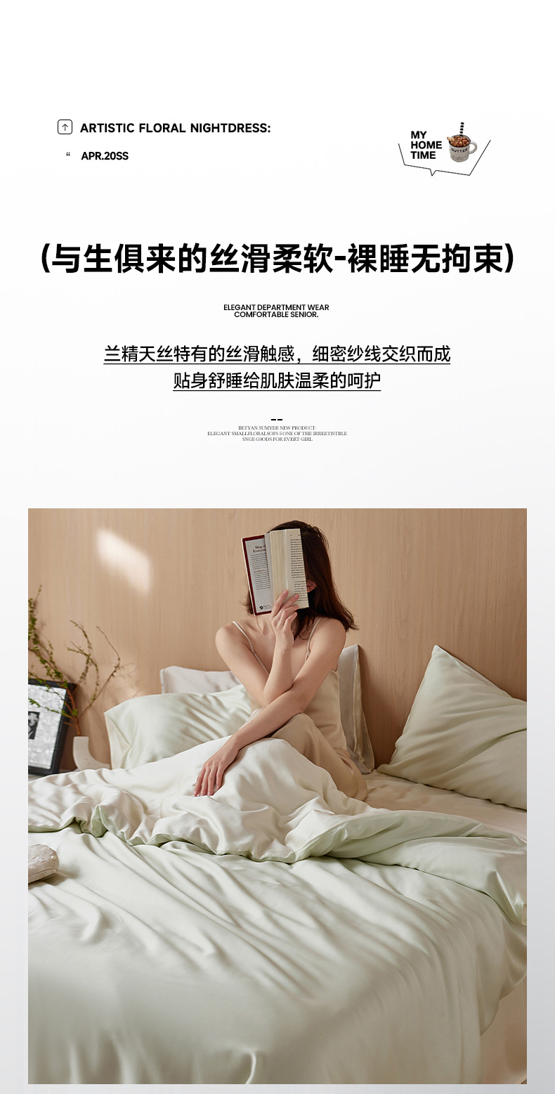 60S 솔리드 컬러 Lanjing Tencel Lyocell 4 피스 세트 봄과 여름 새로운 입장 럭셔리 침대 시트 퀼트 커버 침대 커버 침대 커버스토어 가기