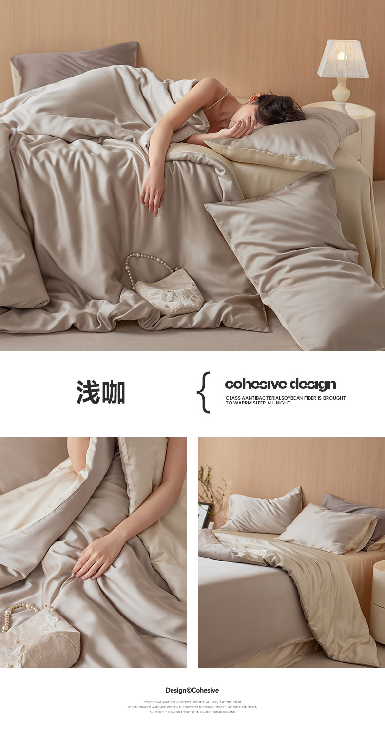60S 솔리드 컬러 Lanjing Tencel Lyocell 4 피스 세트 봄과 여름 새로운 입장 럭셔리 침대 시트 퀼트 커버 침대 커버 침대 커버