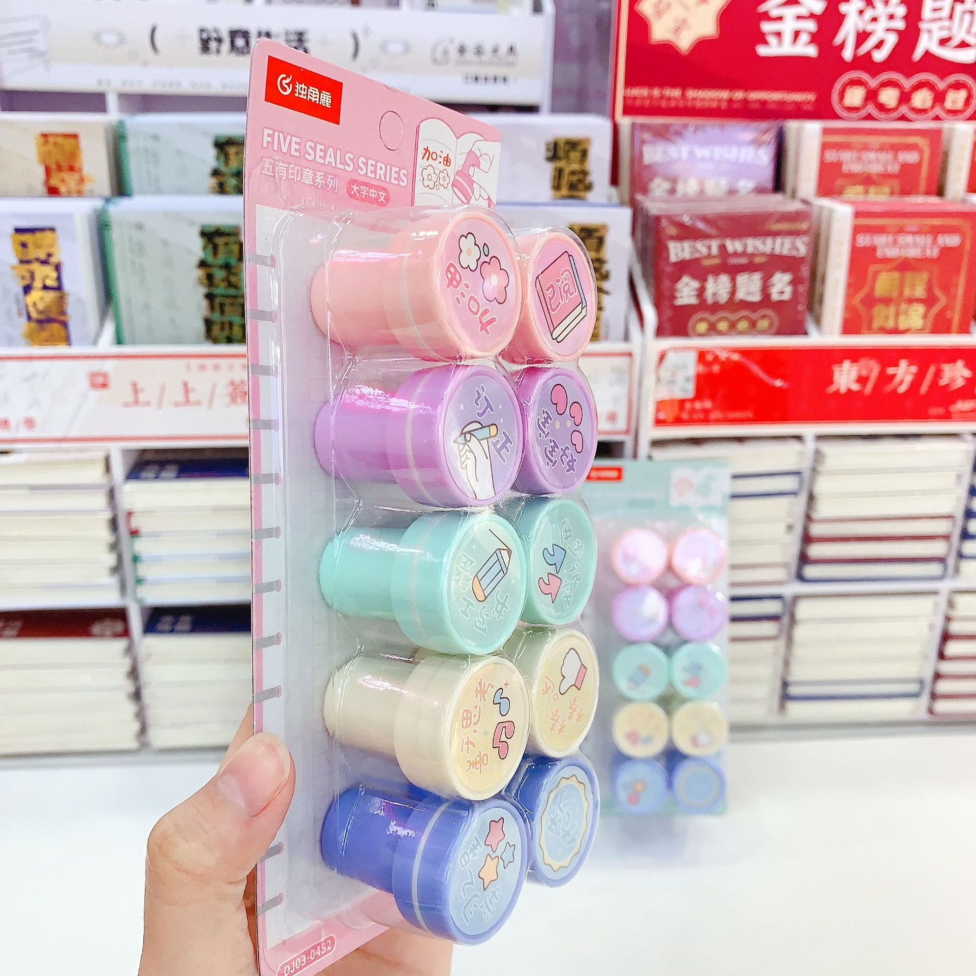 새로운 창의적인 일각 사슴 5개의 스탬프, 큰 글자 중국어 스탬프, 학생 수첩에 꼭 필요한 만화 귀여운 스탬프스토어 가기