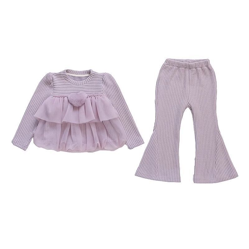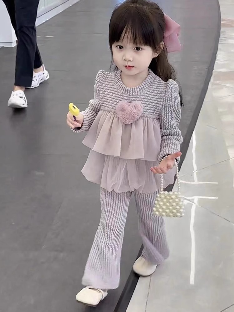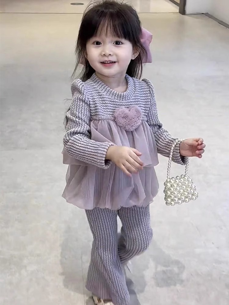 소녀 봄과 가을 세트 새로운 아기 소녀 메쉬 스티칭 탑 플래 바지 투피스 어린이 유행 가을 패션