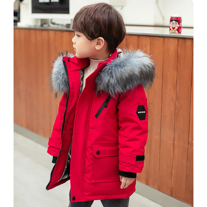 어린이 다운 재킷 소년의 중간 길이 두꺼운 겨울 2023 새로운 서양식 화이트 덕 다운 재킷 어린이 및 어린이스토어 가기