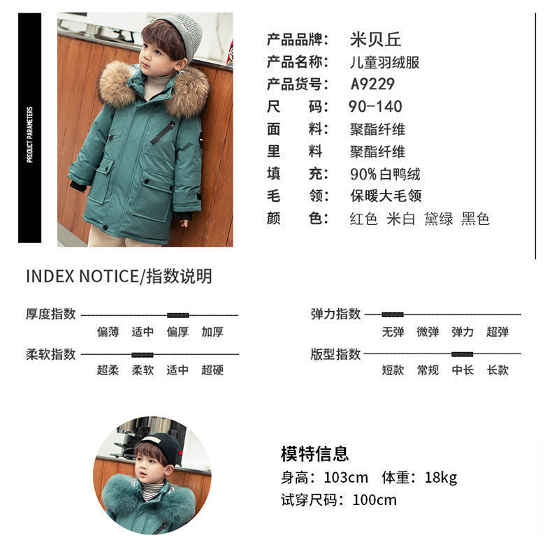 어린이 다운 재킷 소년의 중간 길이 두꺼운 겨울 2023 새로운 서양식 화이트 덕 다운 재킷 어린이 및 어린이