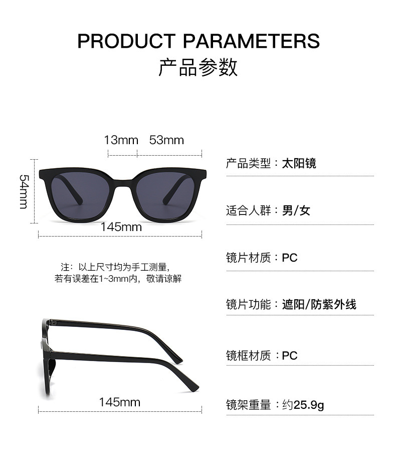 새로운 gm 선글라스 여성용 고급 사각형 프레임 선글라스 남성용 운전용 자외선 차단 선글라스