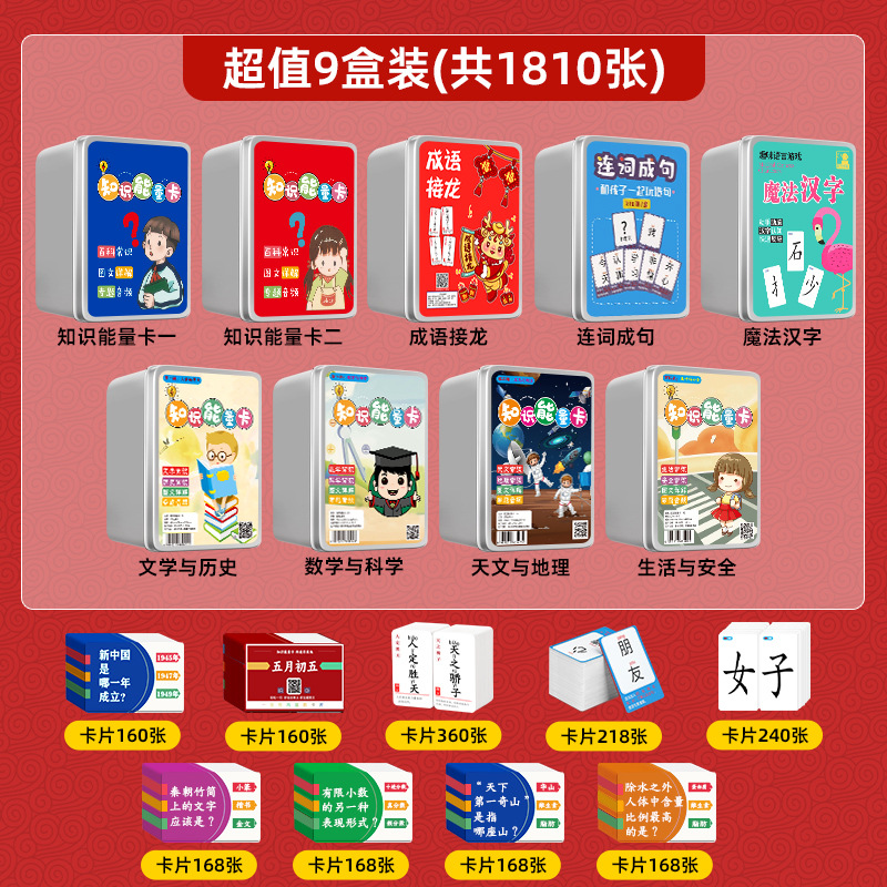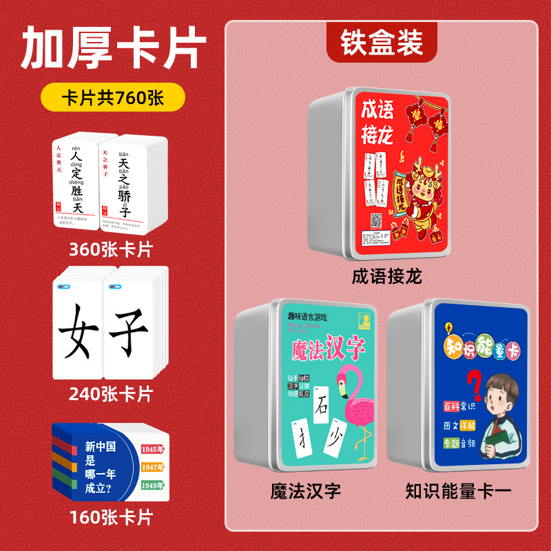 • 카드 760장 [용어 솔리테어 + 마법의 한자 + 지식 에너지 카드] 철 상자에 들어 있는 3박스