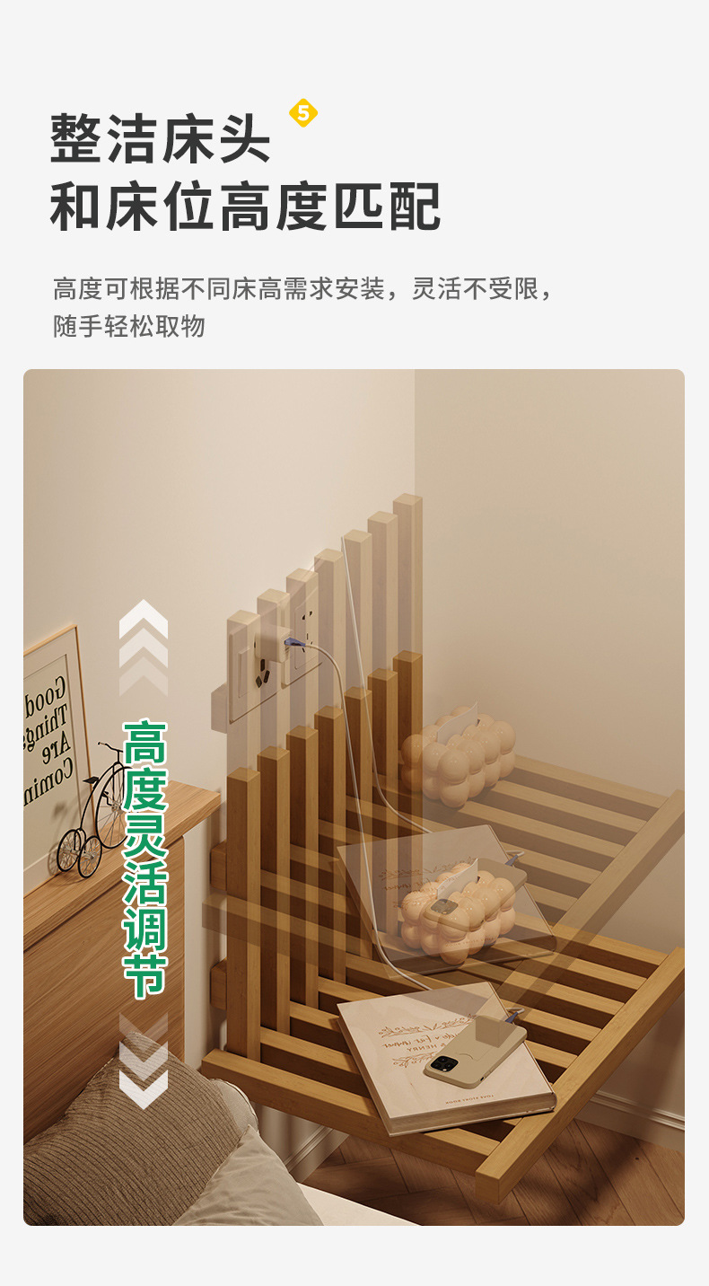 부동 침대 테이블 창조적 인 홈 침실 접이식 벽 랙 단단한 나무 침대 옆 테이블