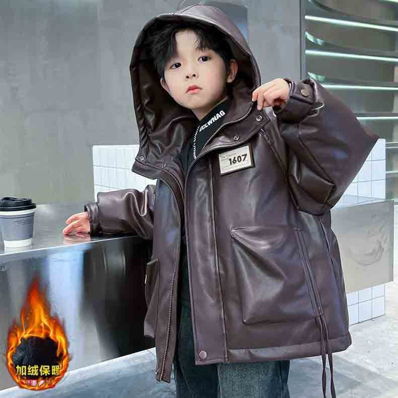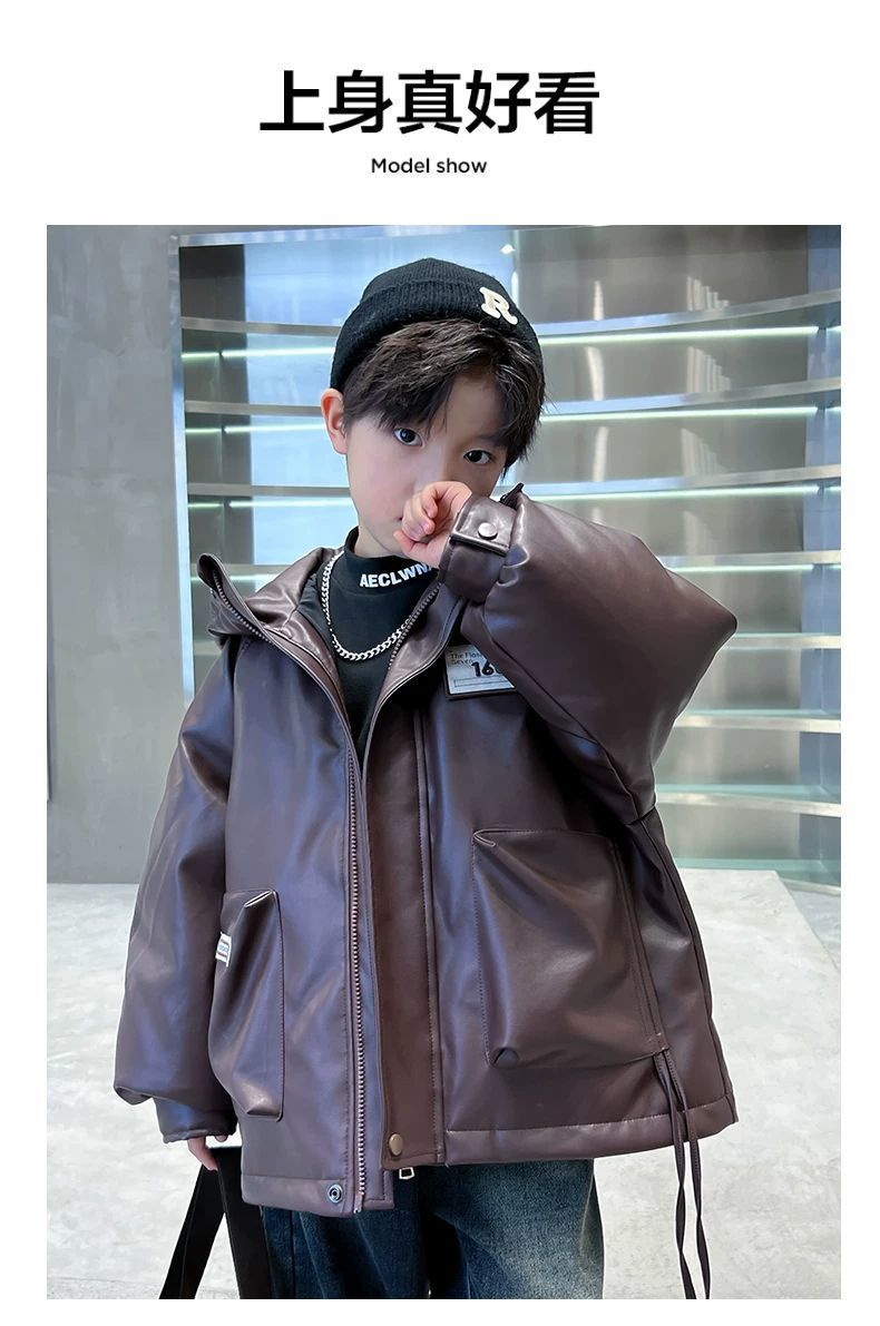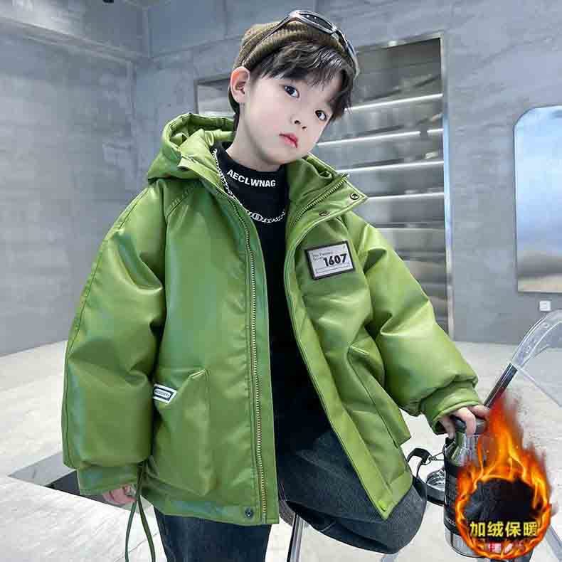 남학생 가죽 워시프리 코튼 코트 겨울 2024 새로운 인터넷 연예인 프라이드 스트리트 어린이 겨울 코트 두꺼운 코튼 코트 가죽 코트스토어 가기