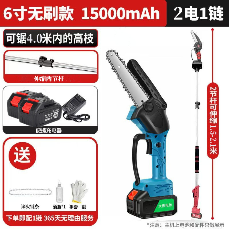 • 5.5m 개의 높은 가지를 톱질할 수 있습니다 - 텔레스코픽 막대 + 6inch 톱 + 2.0 배터리 6inch 전기 1 체인