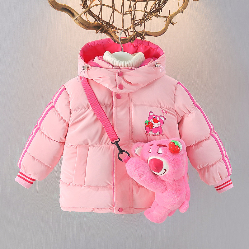 어린이 의류 소녀 딸기 곰 면화 패딩 재킷 2023 새로운 어린이 겨울 아기 기모 면화 패딩 재킷 겨울 의류 어린 소녀면 패딩 재킷
