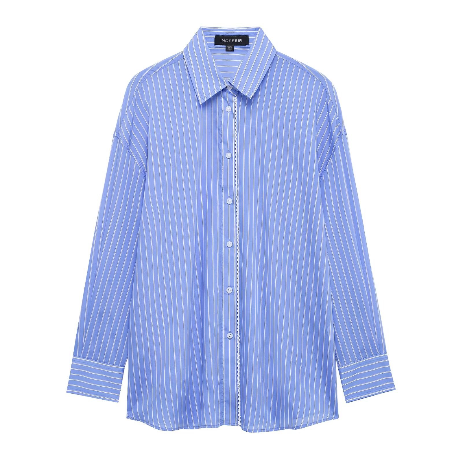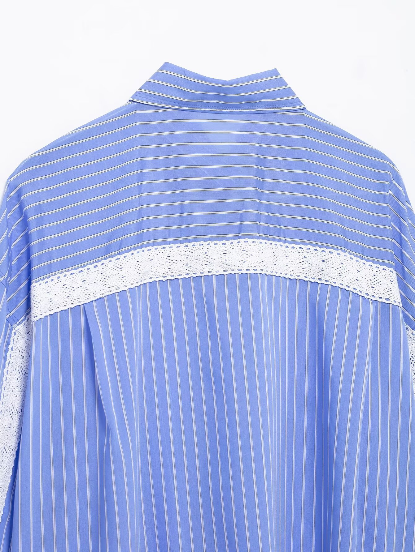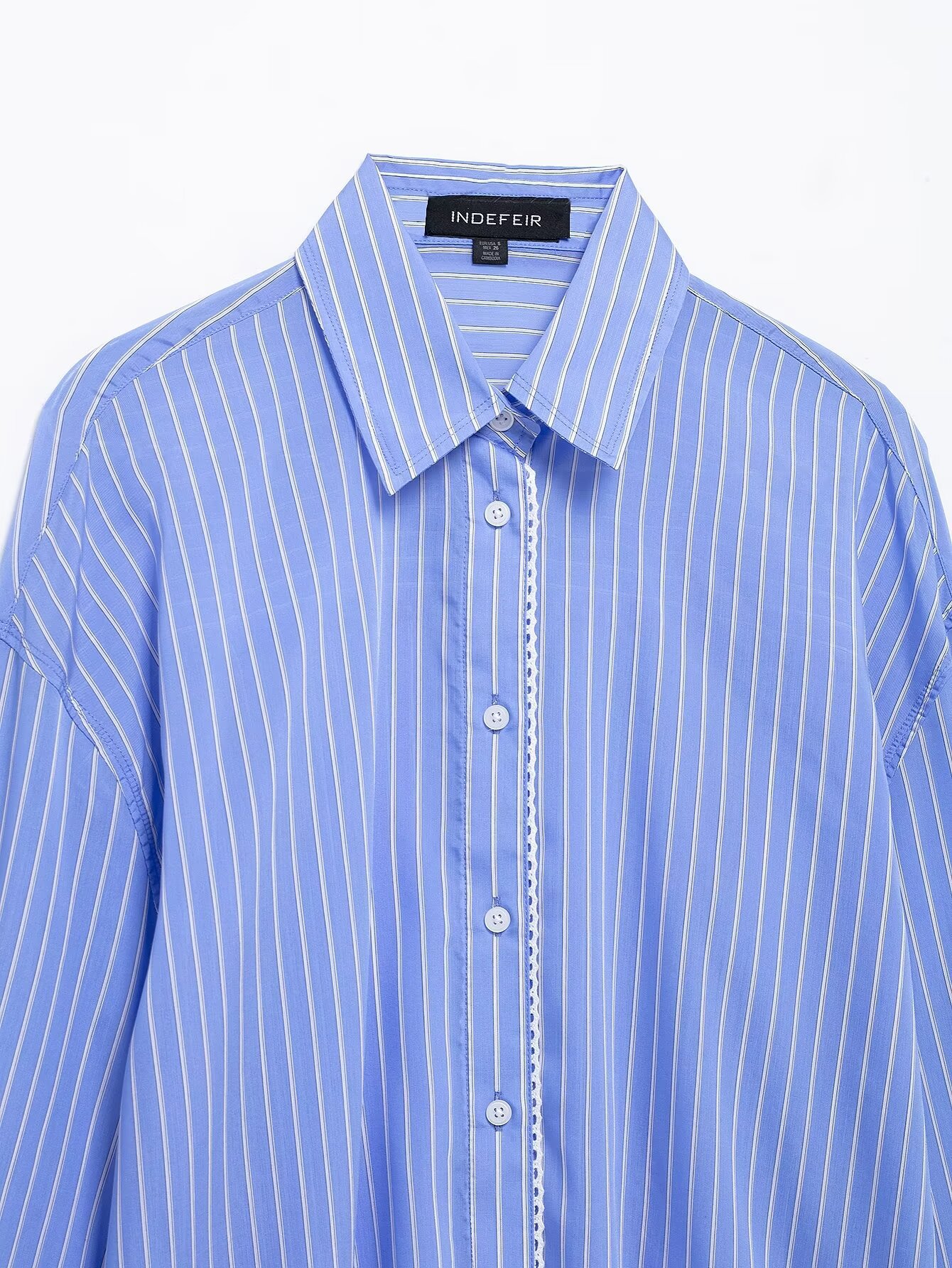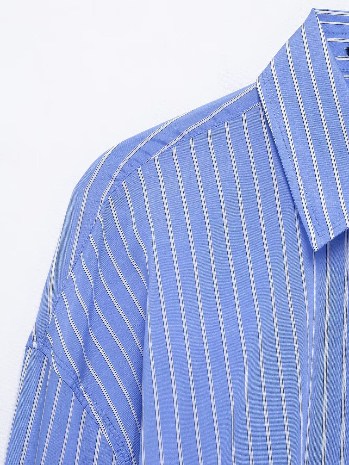 2025 봄 새로운 유럽과 미국의 국경 여성 거리 패션 포플린 스트라이프 루즈 셔츠 w085 245052