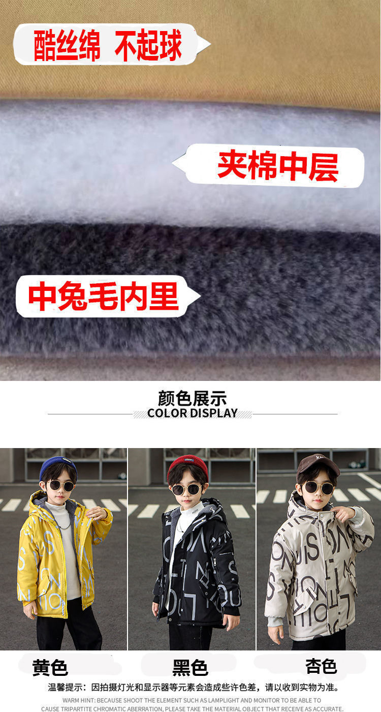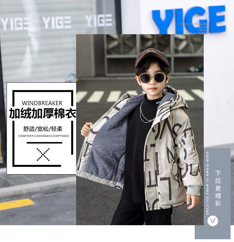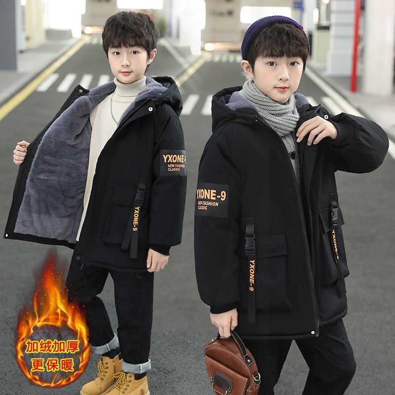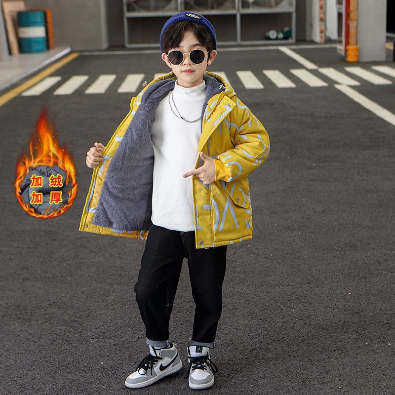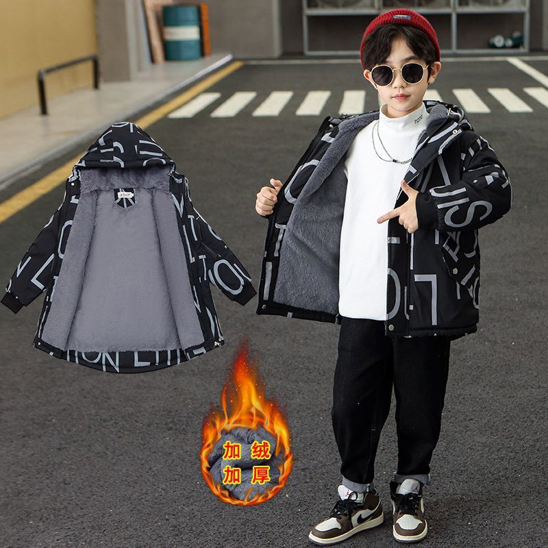 남학생 코트 2024 새로운 가을/겨울 기모 두꺼운 아동면 패딩 코트 아동면 패딩 재킷 한국식 파이크 의류 서양식스토어 가기