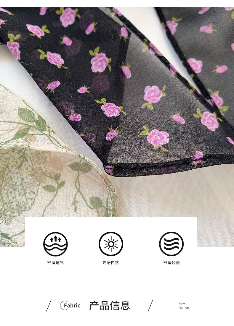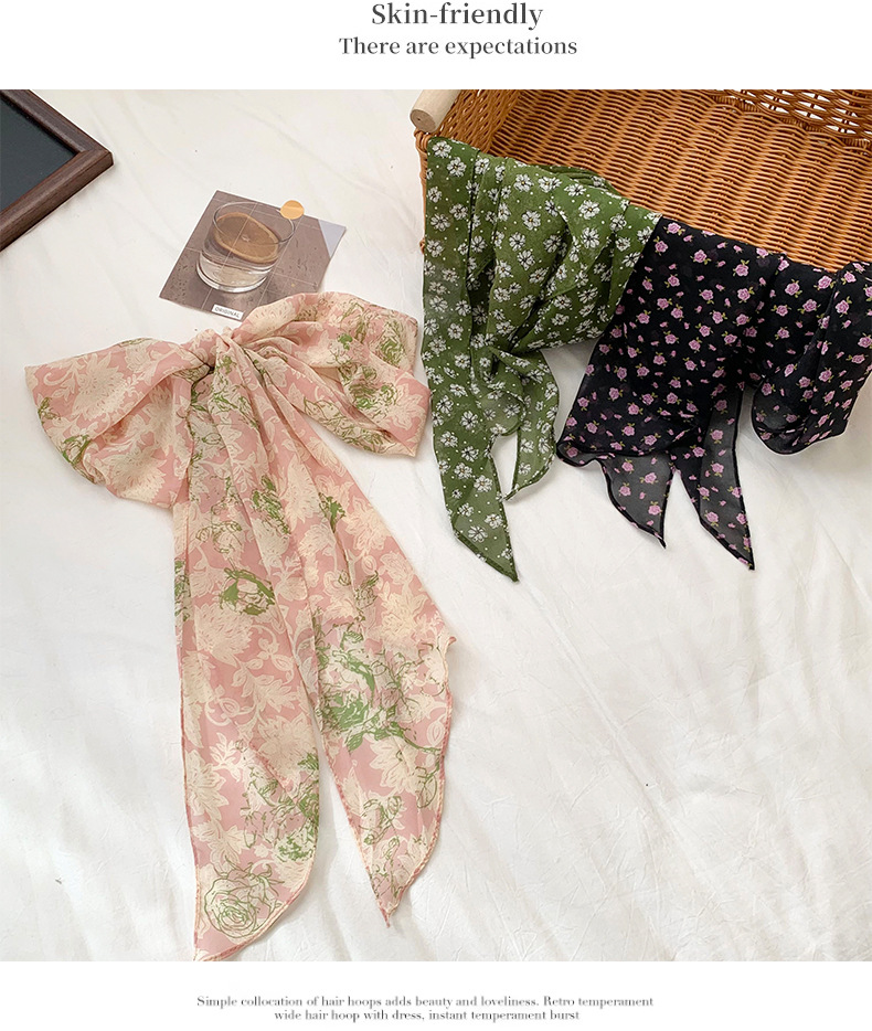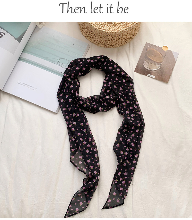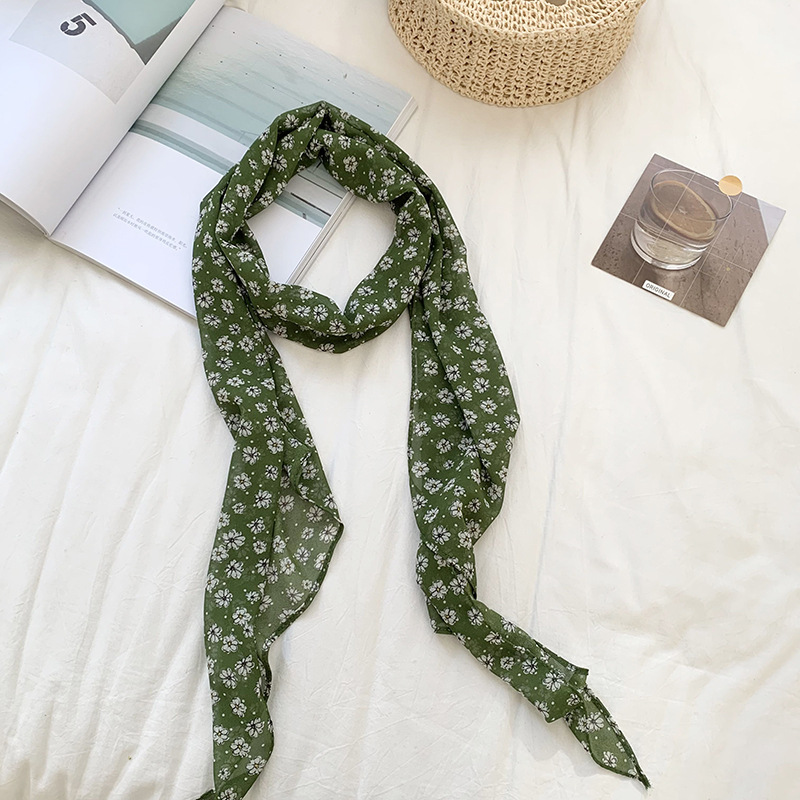 긴 스카프 여성의 봄과 여름 프랑스 새로운 도착 경량 거즈 스카프 캐주얼 외부 스카프 벨트 작은 꽃 머리 벨트