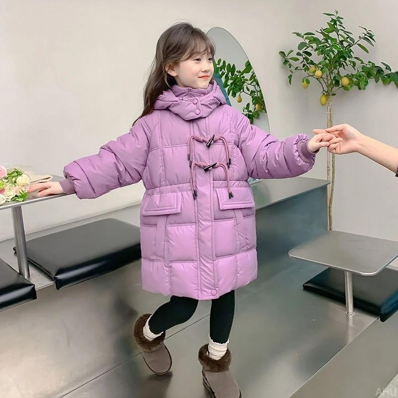 소녀면 패딩 재킷 겨울 서양식 2024 새로운 중간 길이의 코튼 패딩 재킷 어린이 패딩 겨울면 패딩 재킷 조수스토어 가기
