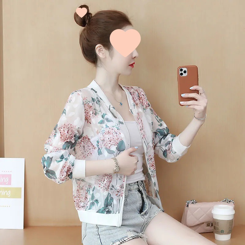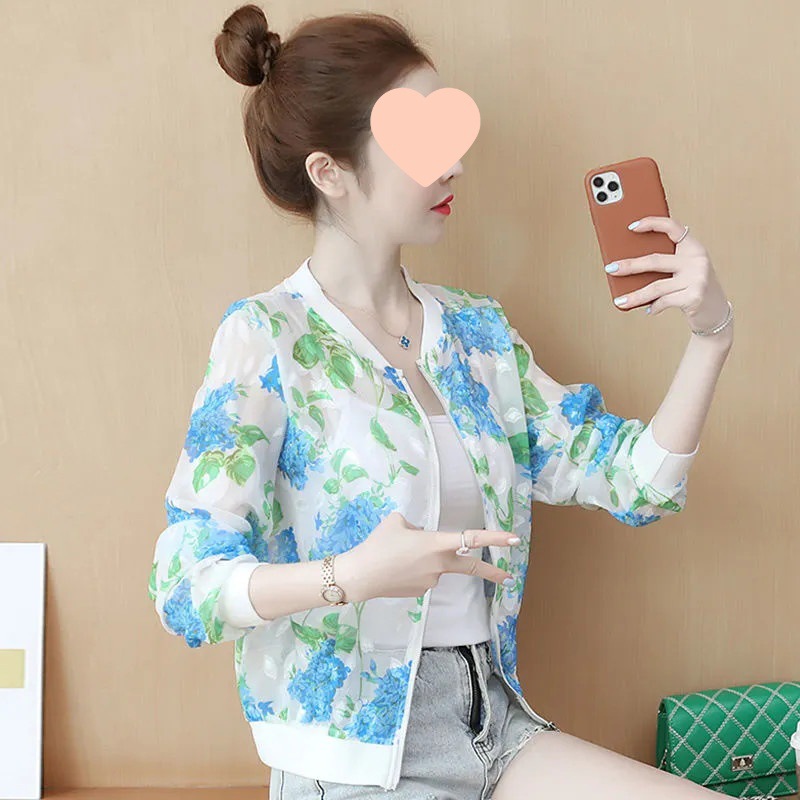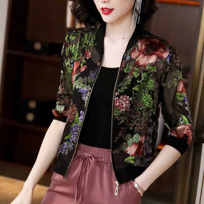 카디건 중년 어머니 코트 여성 트렌디 인 여름 얇은 짧은 재킷 야구 의류 쉬폰 긴팔 선 스크린 의류스토어 가기