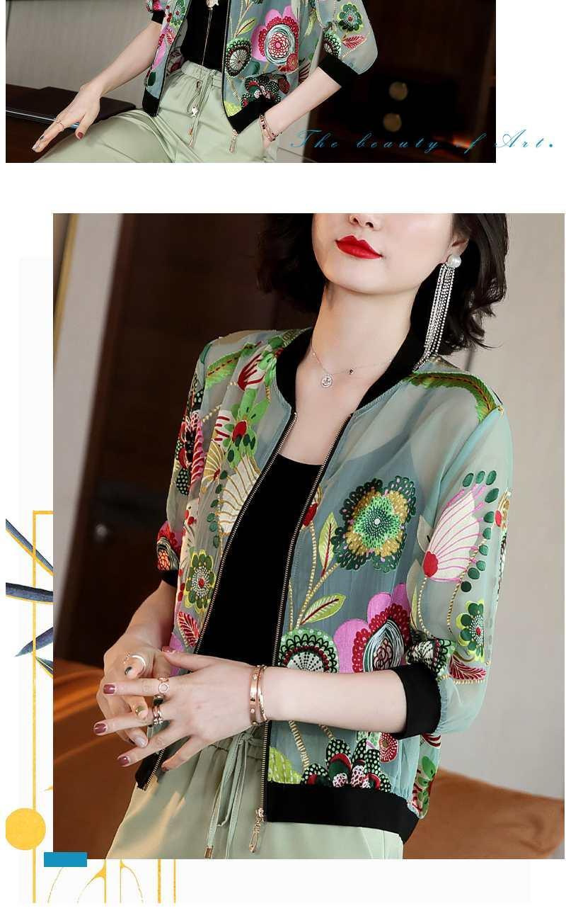카디건 중년 어머니 코트 여성 트렌디 인 여름 얇은 짧은 재킷 야구 의류 쉬폰 긴팔 선 스크린 의류