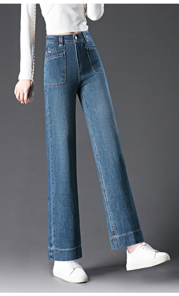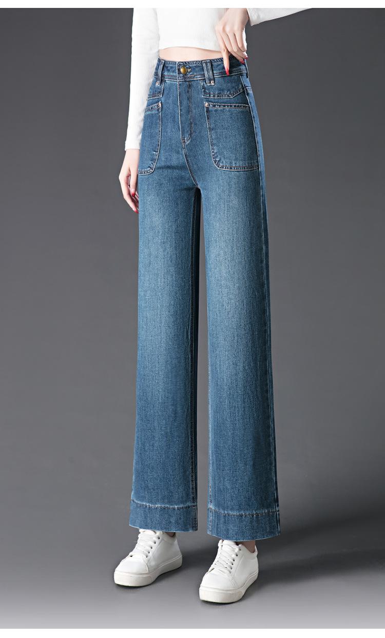1070 스트레이트 다리 청바지 어머니 좁은 넓은 중년 여성 바지 높은 허리 느슨한 새 한국 스타일 2025 봄 새로운