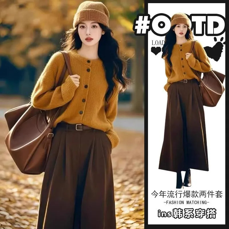 2024 가을과 겨울 새로운 한국 게으른 부드러운 왁스 스웨터 여성 외복 느슨한 복고풍 니트 셔츠 최고 세트 여성