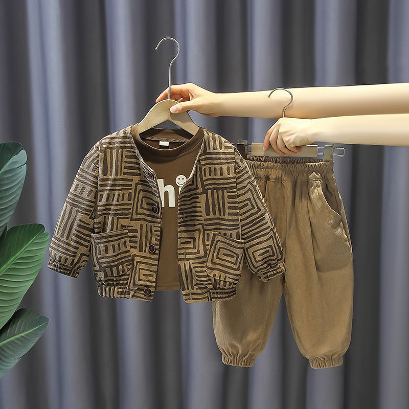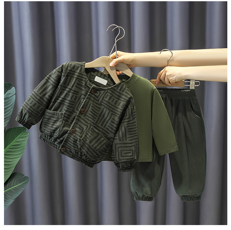 [4258 컬렉션] 소년 가을 원피스 세트 유행 튀긴 거리 코듀로이 3 조각 잘생긴 아이들의 봄과 가을스토어 가기