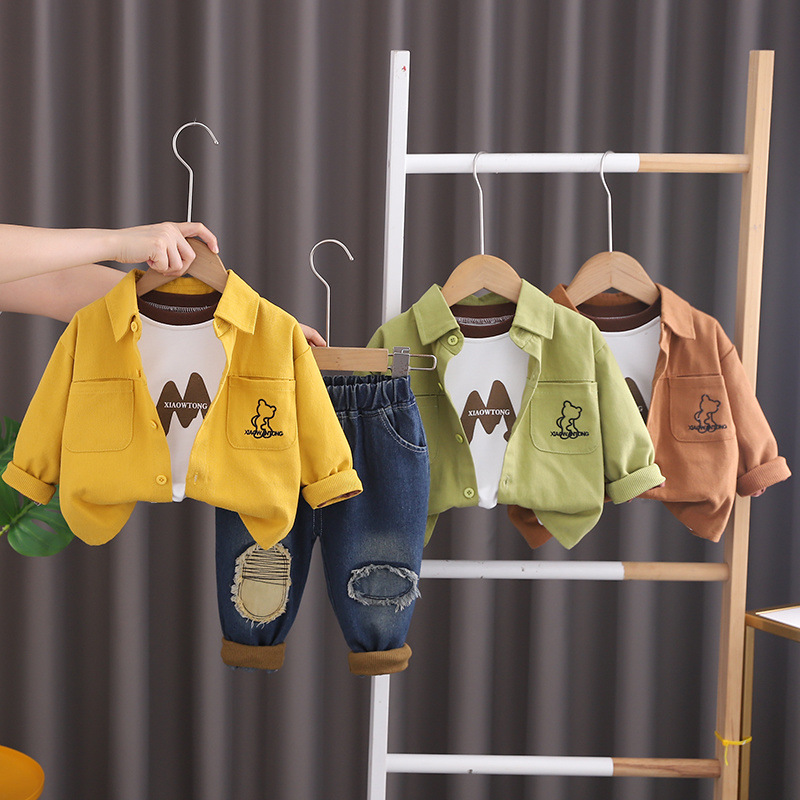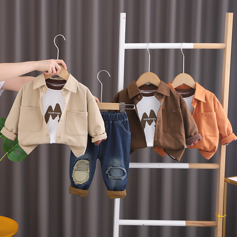 소년 가을 세트 2024 새로운 스타일 어린이 봄과 가을 스타일 셔츠 3 피스 세트 아기 1-3 세 5 유행스토어 가기