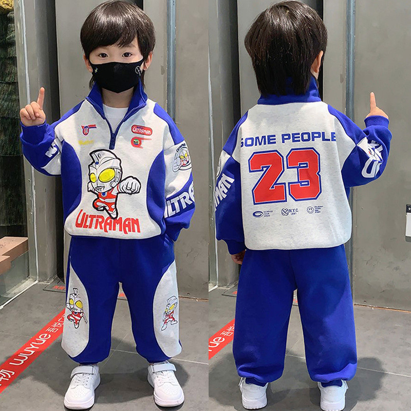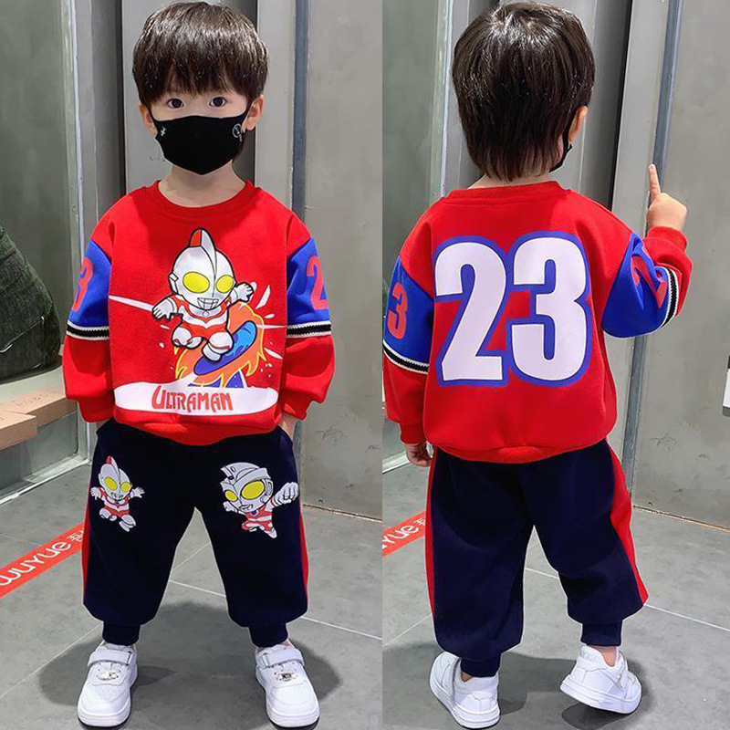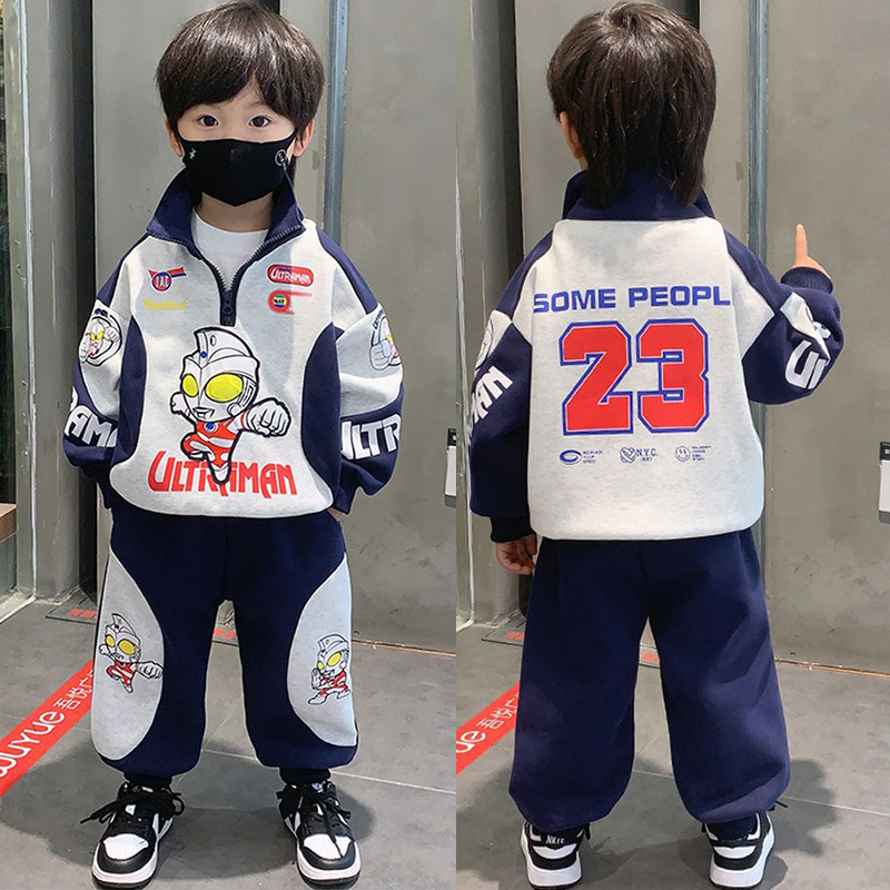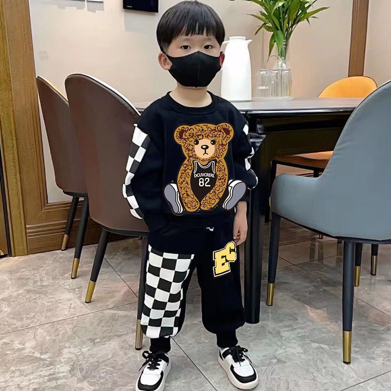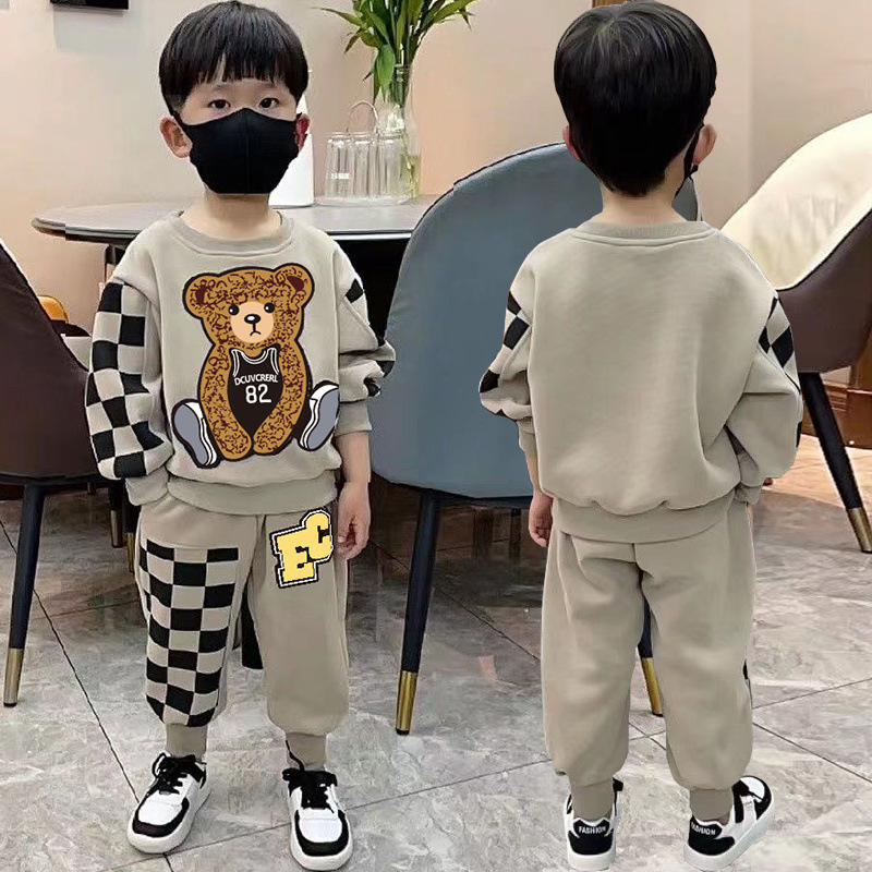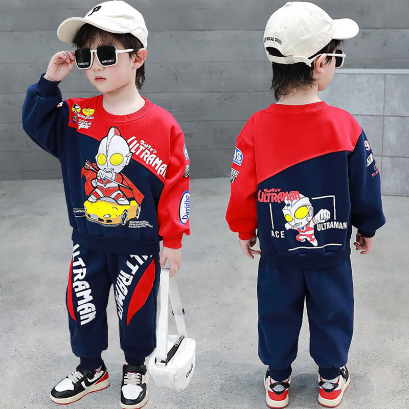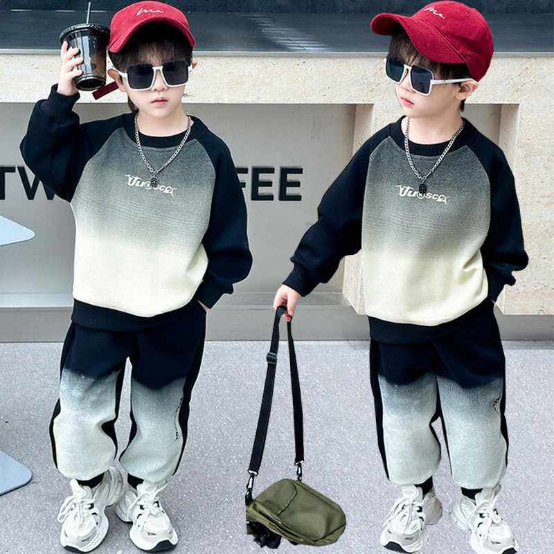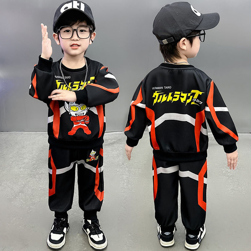 소년의 아기 잘 생긴 세트 2024 새로운 어린이 소년의 스웨트 셔츠 만화 투피스 세트 봄과 가을 인터넷 레드 폭발스토어 가기