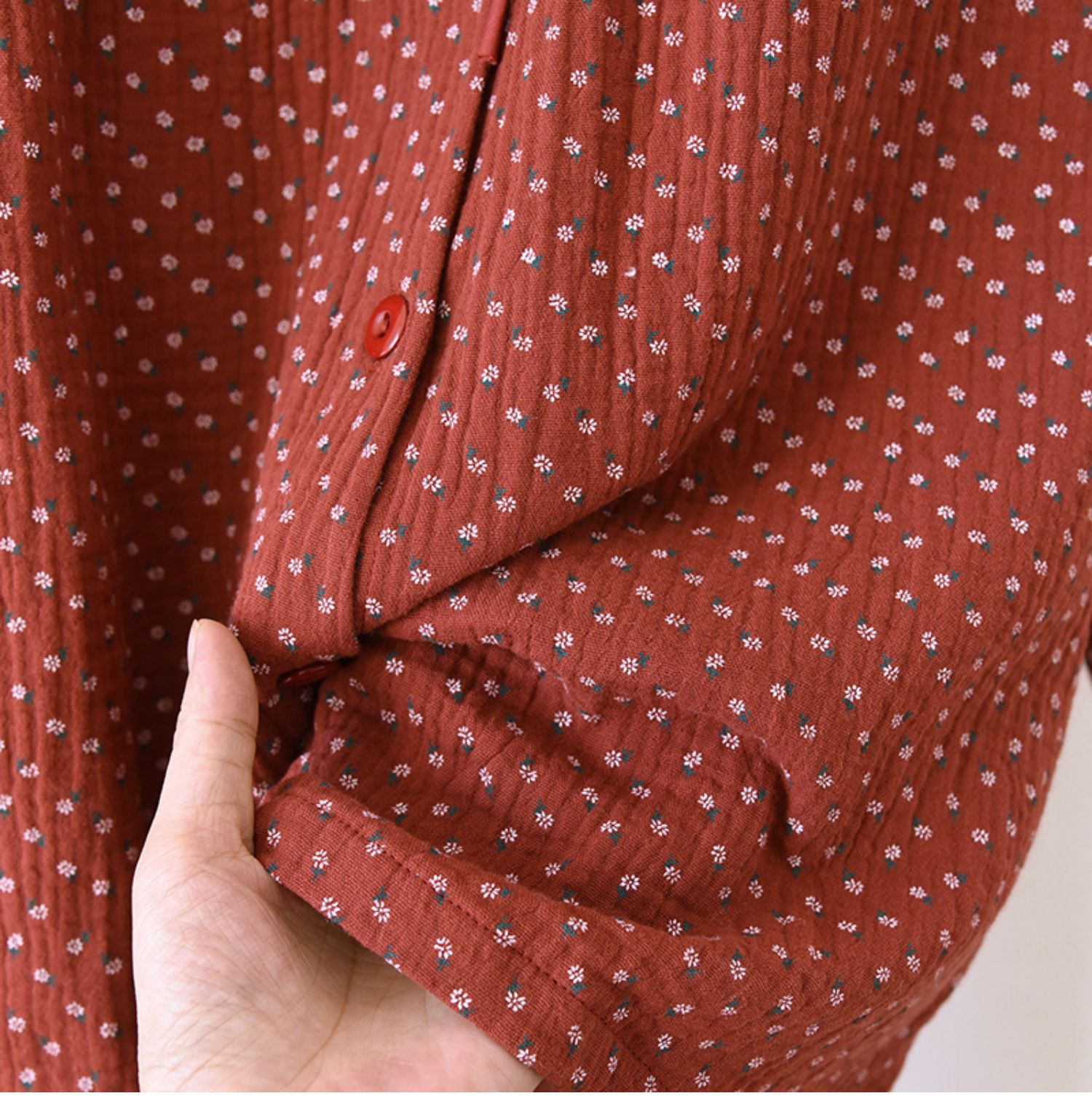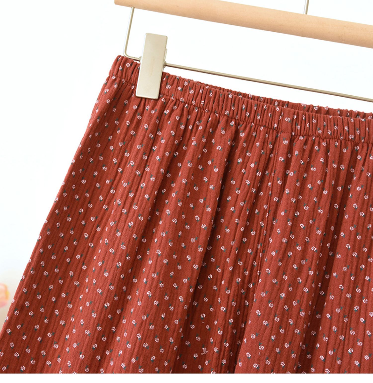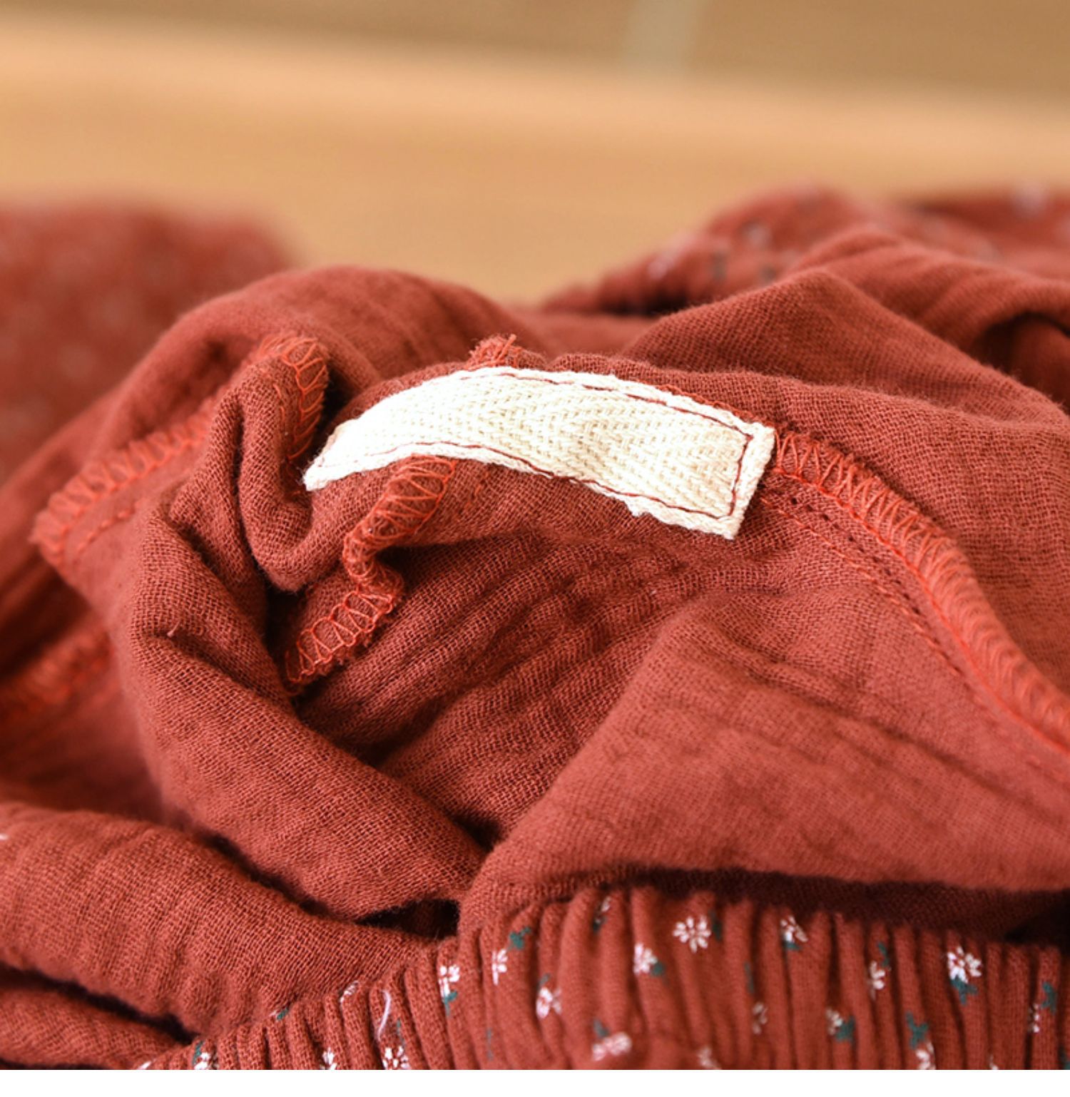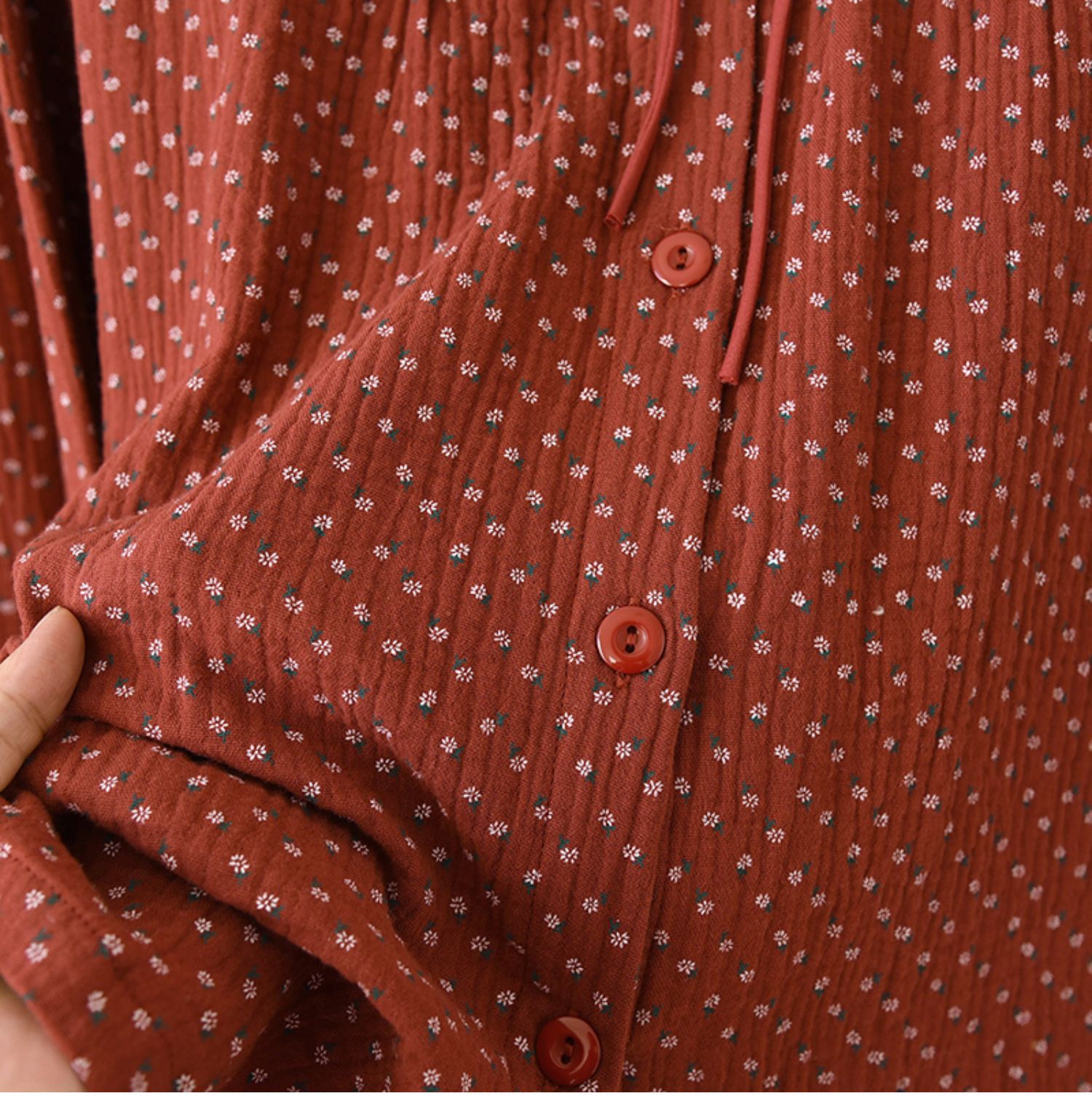 달콤한 봄과 가을 느슨한 세트 브닝 니언 레드 코튼 파자마 인형 칼라 거즈 긴 소매 카디건 홈 옷스토어 가기