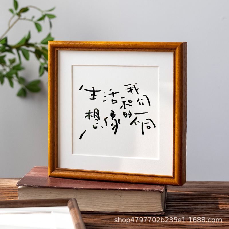 새로운 중국 스타일 솔리드 우드 블랙 호두 컬러 스퀘어 포토 프레임 하이 센스 전통 중국 회화 세트 테이블 6 인치 7 회화 벽 마운트 서예