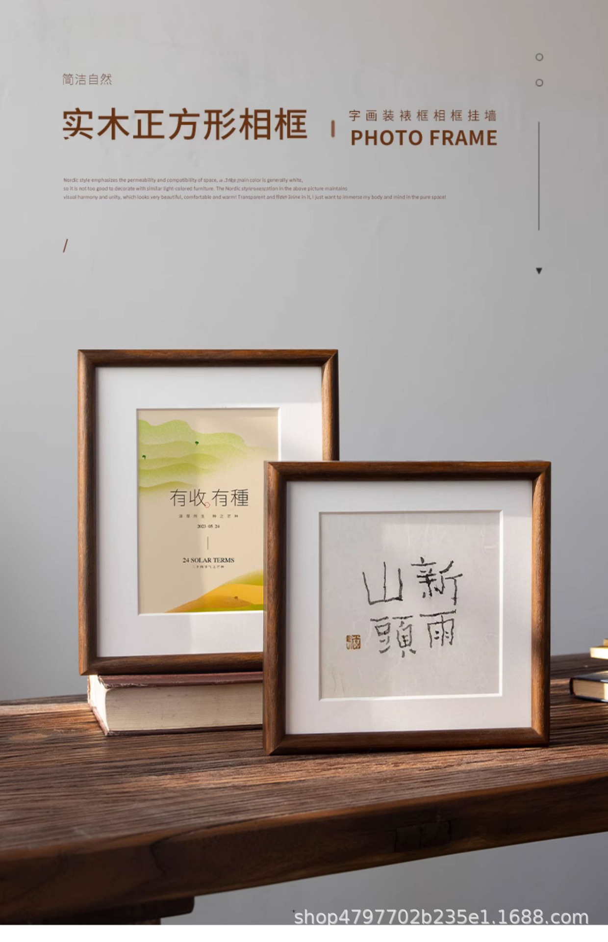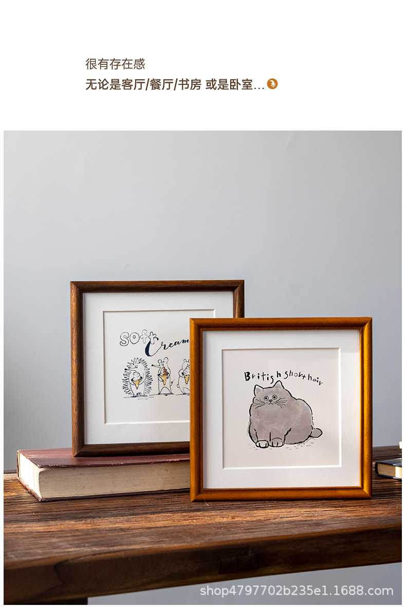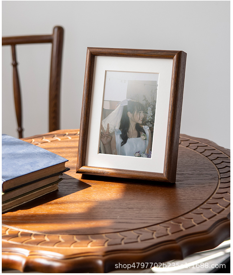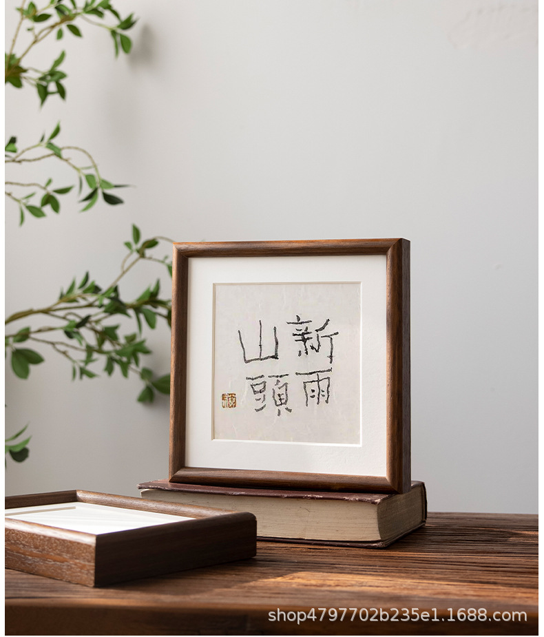 새로운 중국 스타일 솔리드 우드 블랙 호두 컬러 스퀘어 포토 프레임 하이 센스 전통 중국 회화 세트 테이블 6 인치 7 회화 벽 마운트 서예스토어 가기