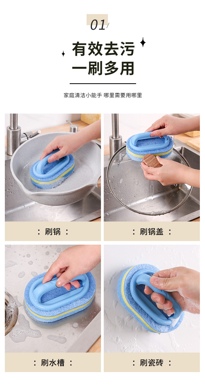 Huisi 국경 스폰지 브러시 주방 오염 제거 세탁기 청소 브러시 손잡이 목욕 브러시 타일 브러쉬 매직 스폰지 세탁기