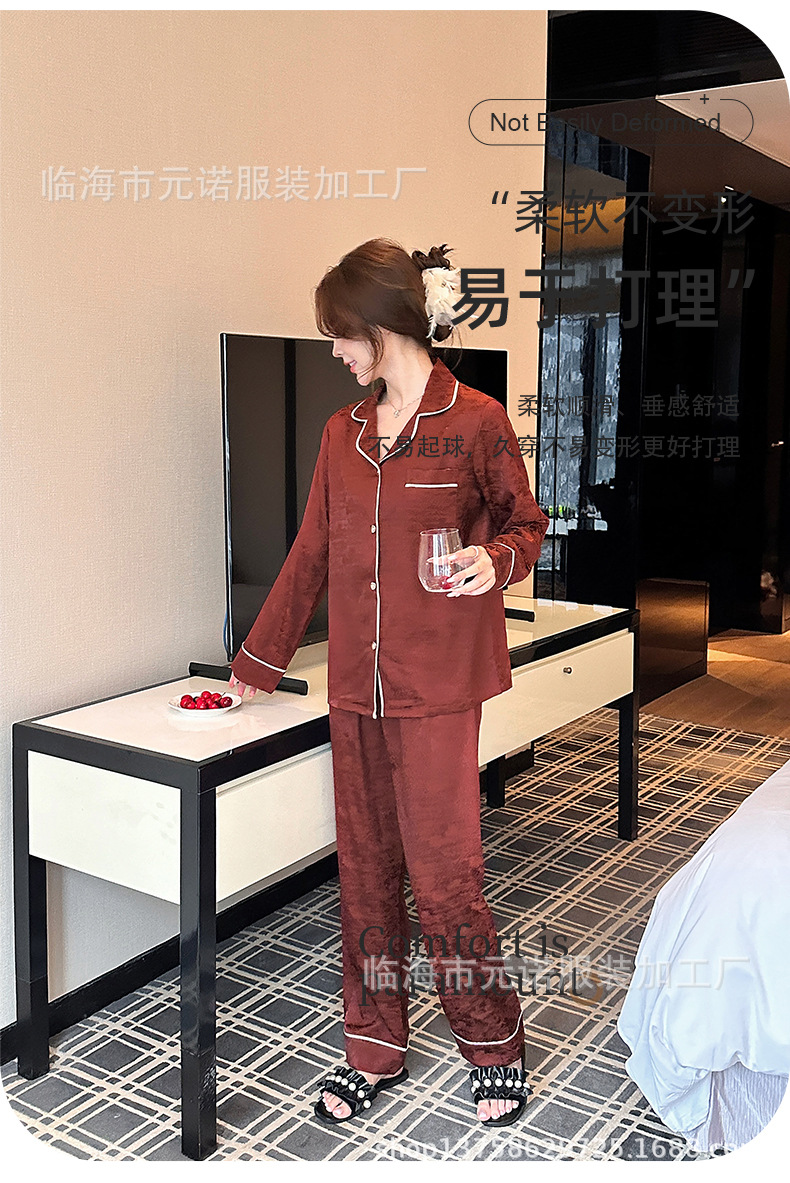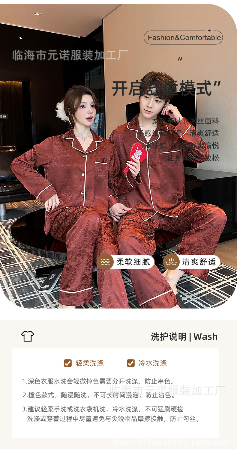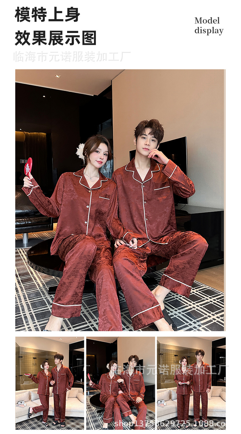 커플 잠옷 봄 새 모조 아세테이트 긴 소매 플러스 사이즈 세트 하이 엔드 새해 레드 자카드 커플 잠옷스토어 가기