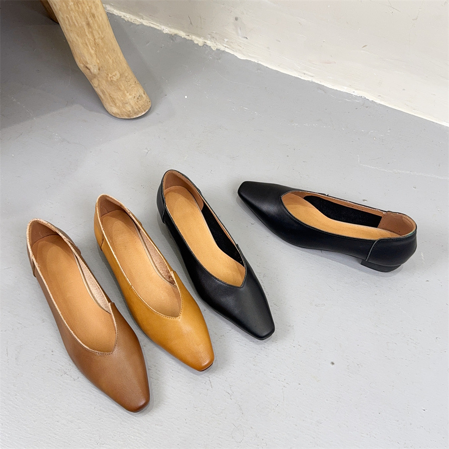 봄 2025 새로운 프랑스 스타일 우아한 뾰족한 로우 힐 통근 신발 밀크 신발 카우보이 얕은 입 플랫 싱글 레이어 신발 여성용스토어 가기