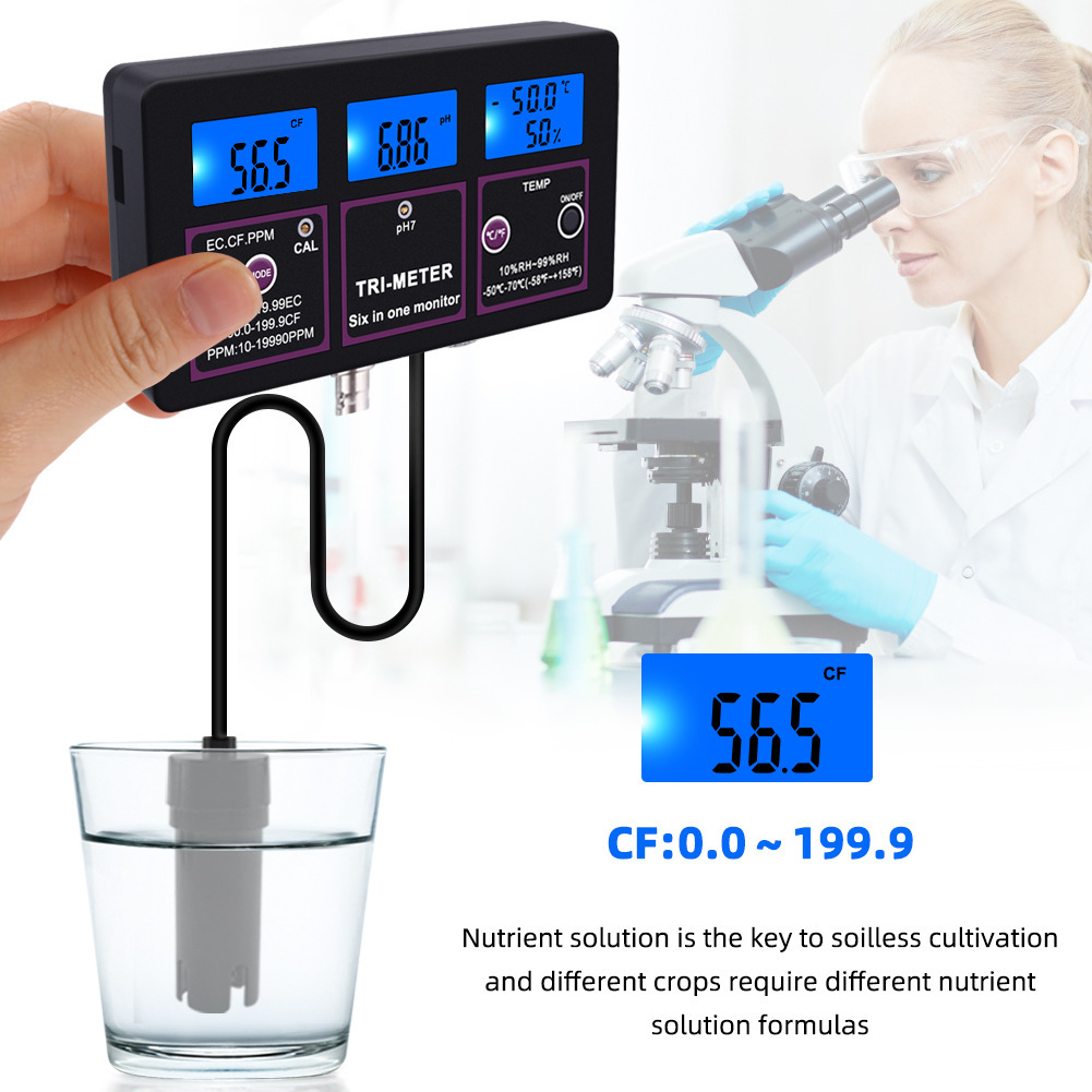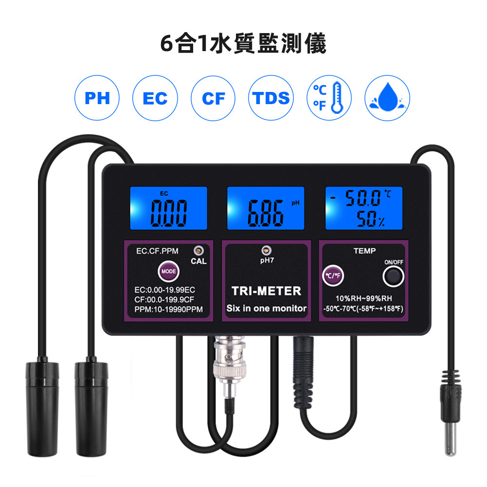 测量范围:ph:0.00-14.00;TEMP:-50℃-70℃;RH:10%RH-99%RH;EC:0.00-19.99EC;CF:0.0-199.9CF;TDS:10-19990ppm