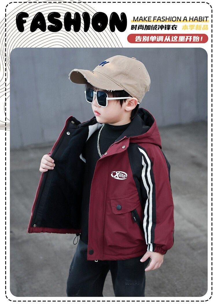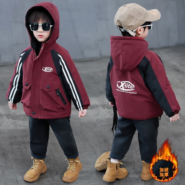소년 파커 코트 기모 2024 년 새로운 어린이 가을 및 겨울 코트 남성 아기의 가을과 겨울 코트