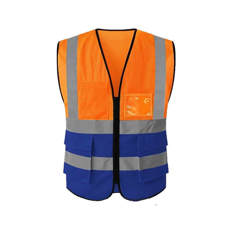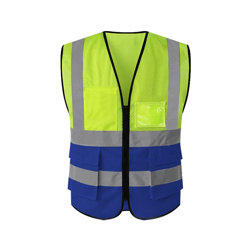 • 형광 노란색과 파란색 스티치* 메쉬 통기성 멀티 포켓 반사 조끼