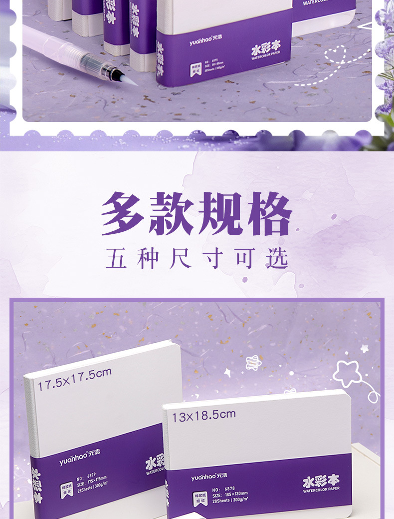 수첩 아크릴 플립북 그림책 정사각형 휴대용 포켓북 스케치북 코튼 페이퍼 미세한 라인 수채화북
