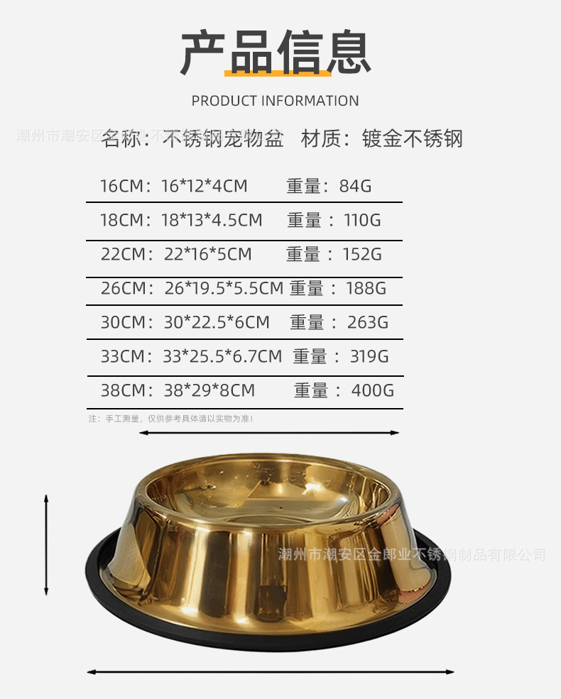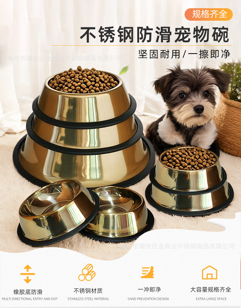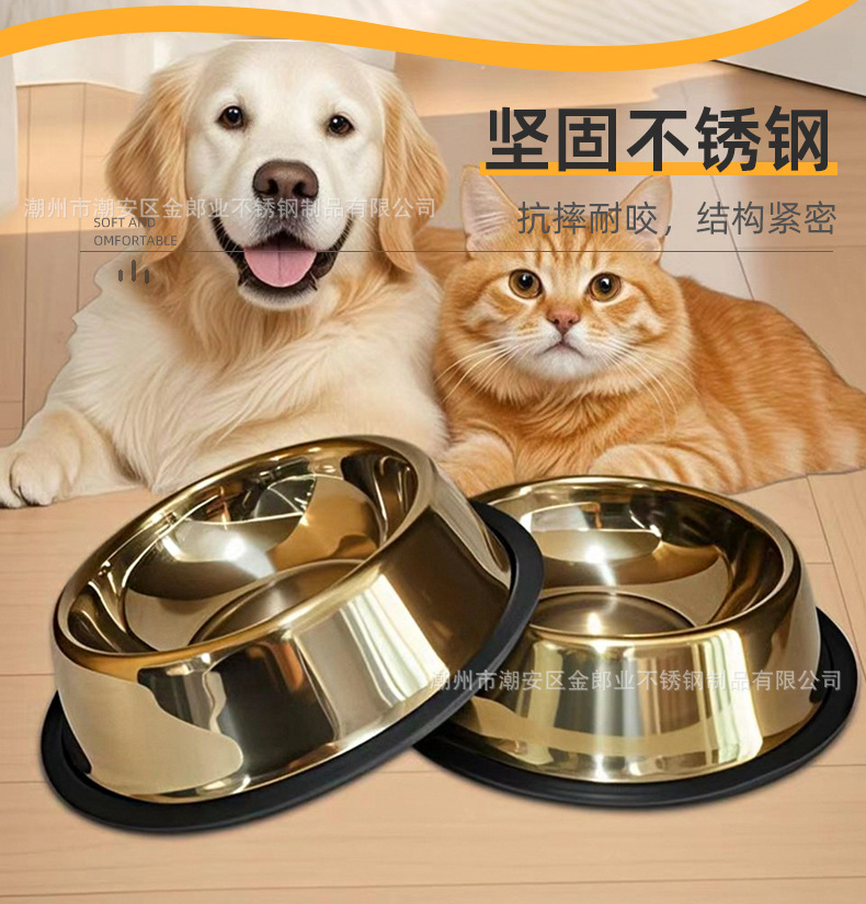 미끄럼 방지 및 팁 방지 금도금 스테인레스 스틸 두꺼운 애완 동물 분지 고양이 대용량 개 분지 피더 개 용품