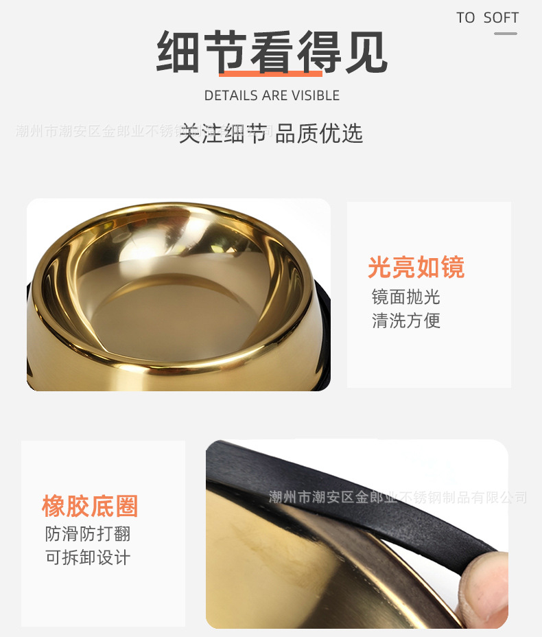 미끄럼 방지 및 팁 방지 금도금 스테인레스 스틸 두꺼운 애완 동물 분지 고양이 대용량 개 분지 피더 개 용품스토어 가기