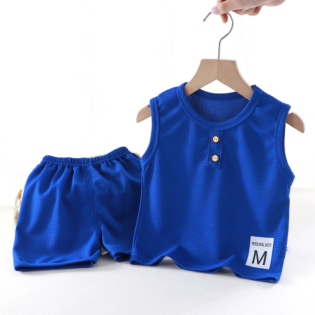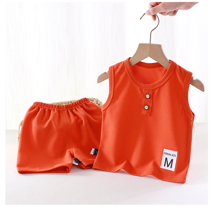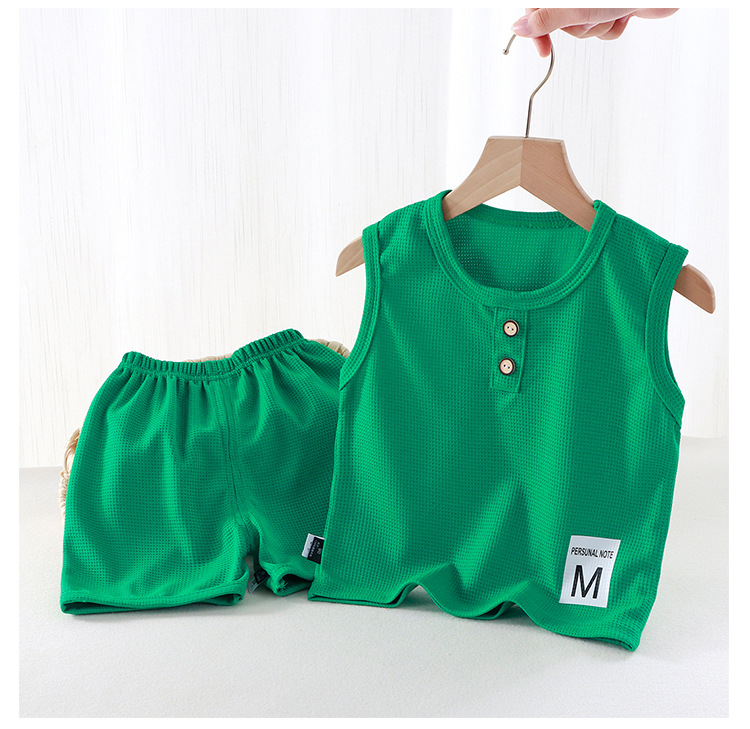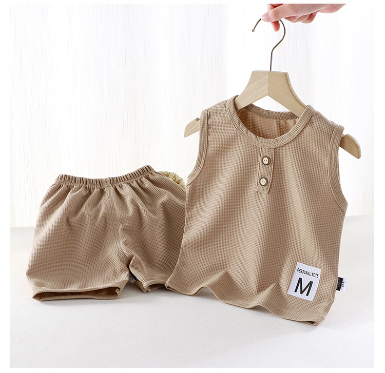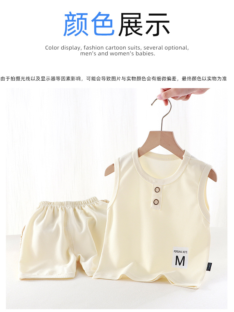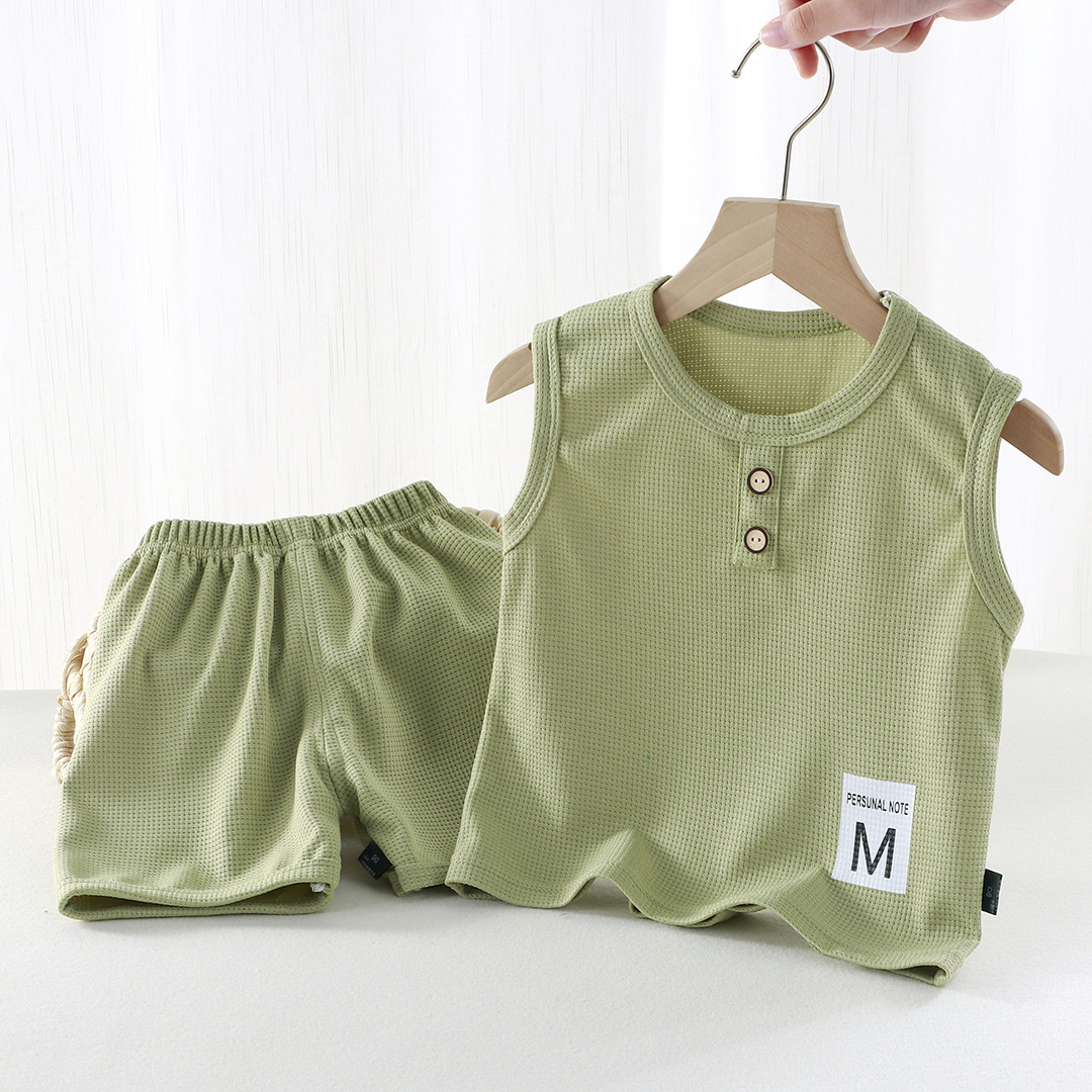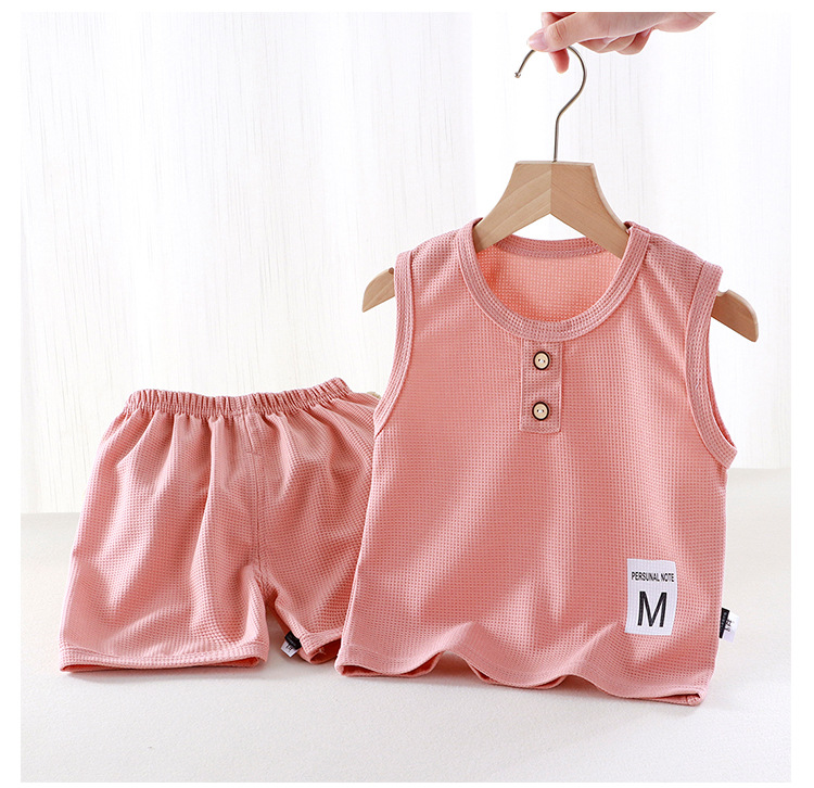 새로운 어린이 와플 조끼 세트 여름 아기 조끼 반바지 소년 소녀를위한 간단한 유행 투피스 세트