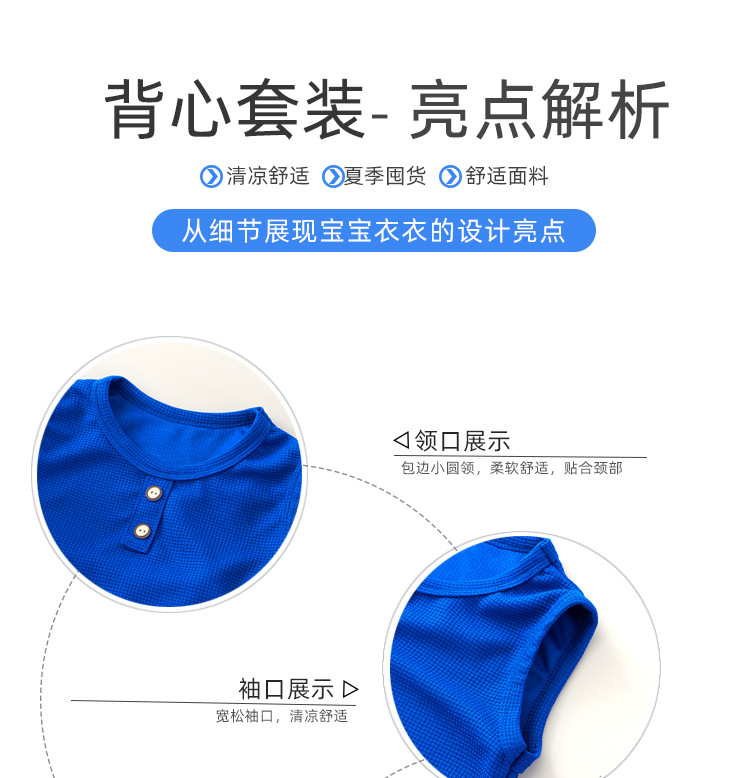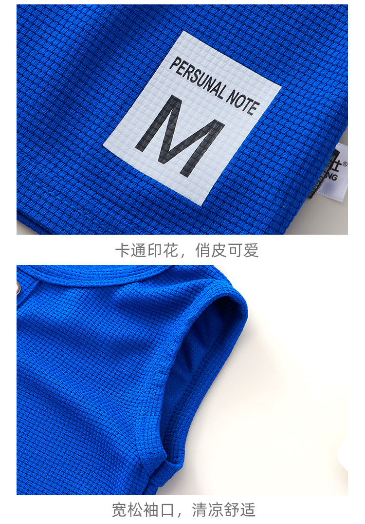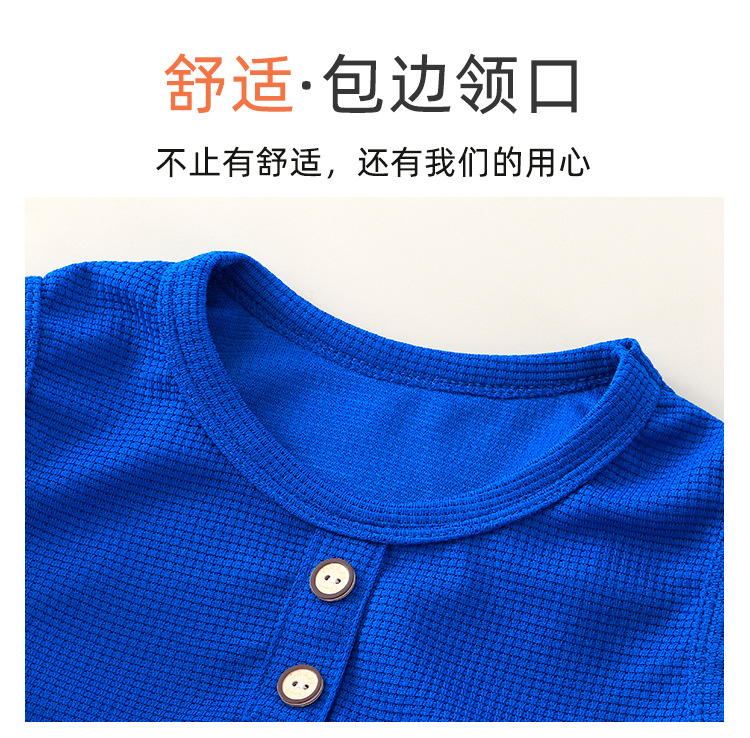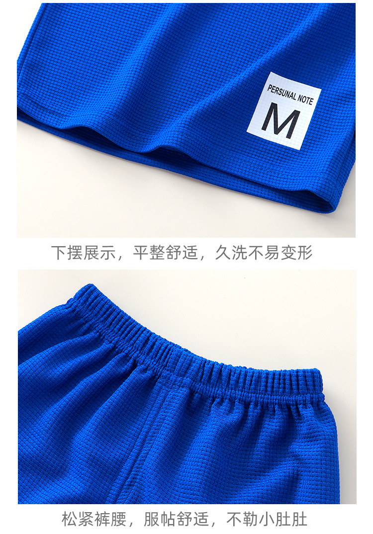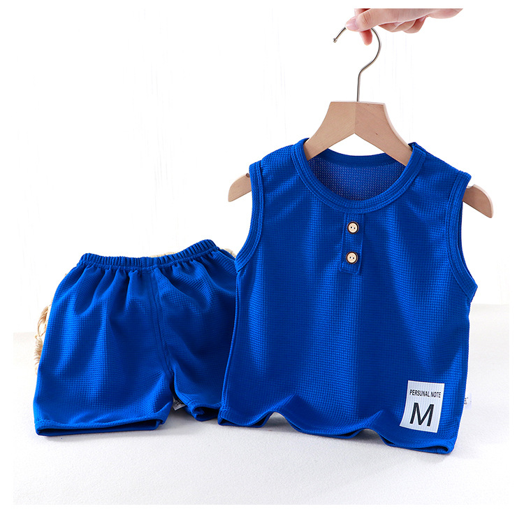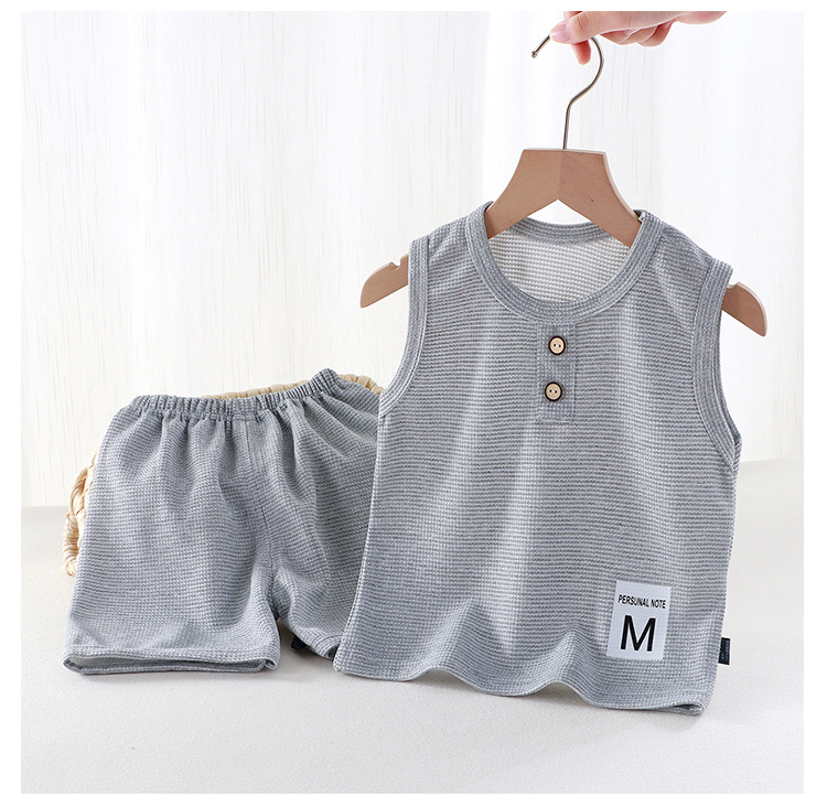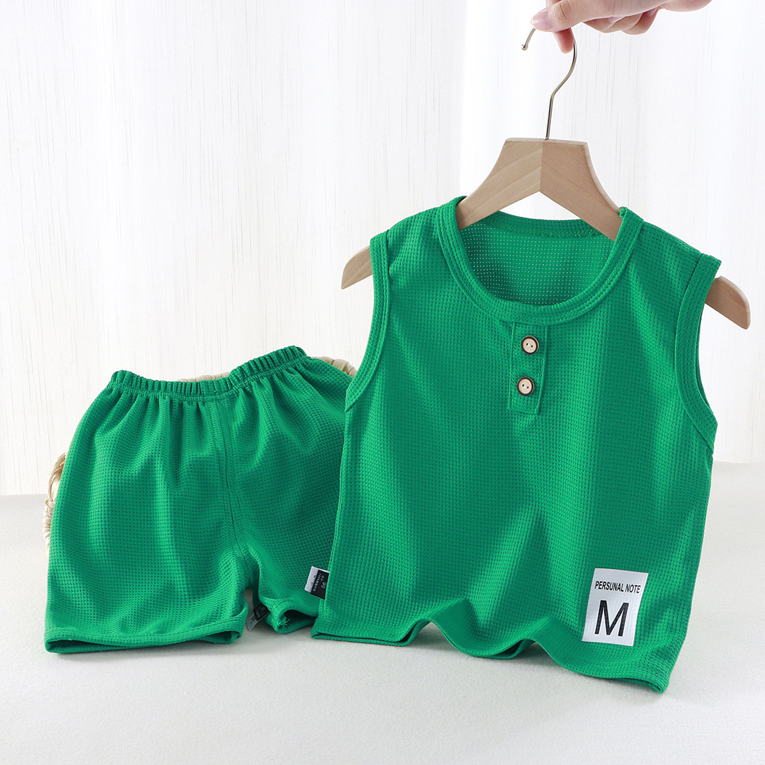 새로운 어린이 와플 조끼 세트 여름 아기 조끼 반바지 소년 소녀를위한 간단한 유행 투피스 세트
