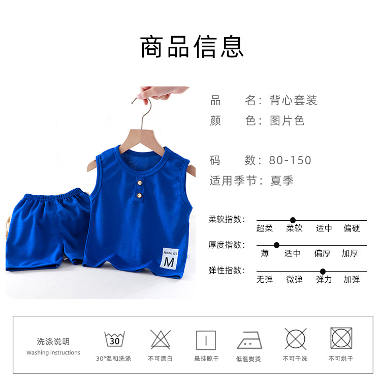 새로운 어린이 와플 조끼 세트 여름 아기 조끼 반바지 소년 소녀를위한 간단한 유행 투피스 세트스토어 가기