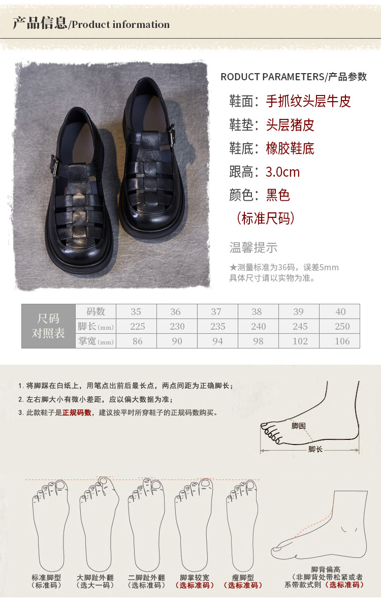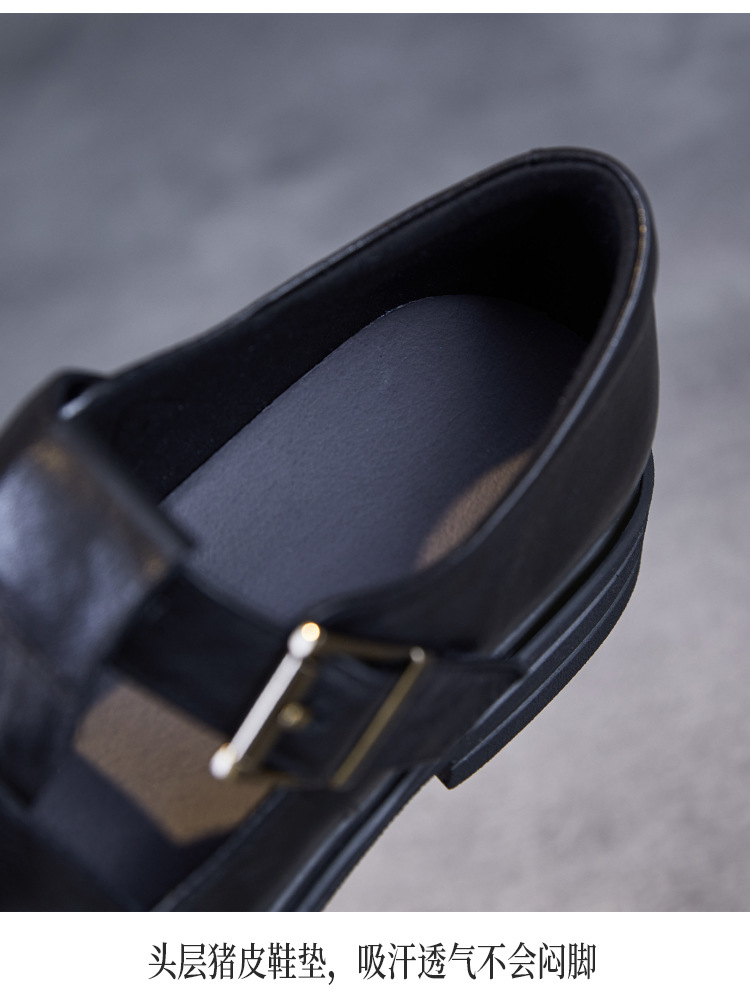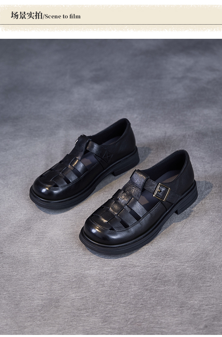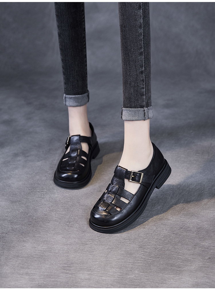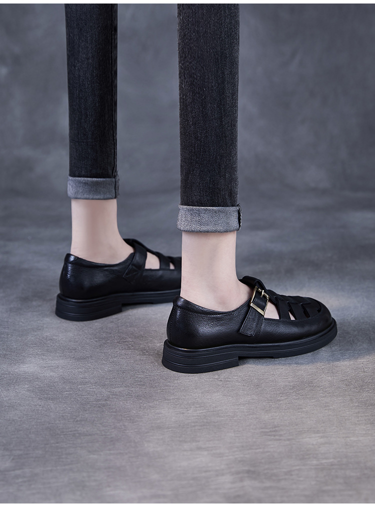 아름다운 정품 가죽 돼지 케이지 신발 여성 봄과 여름 2025 새로운 라운드 헤드 중공 플랫 벨크로 캐주얼 로마 샌들스토어 가기