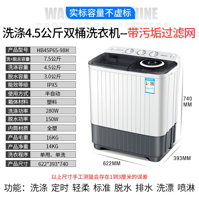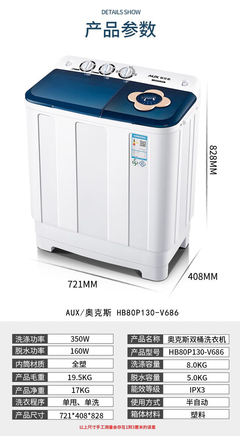 공장 공급 도매 Oaks 세탁기 대용량 병렬 막대 병렬 배럴 탈수 작은 스핀 건조 가정용 반자동스토어 가기