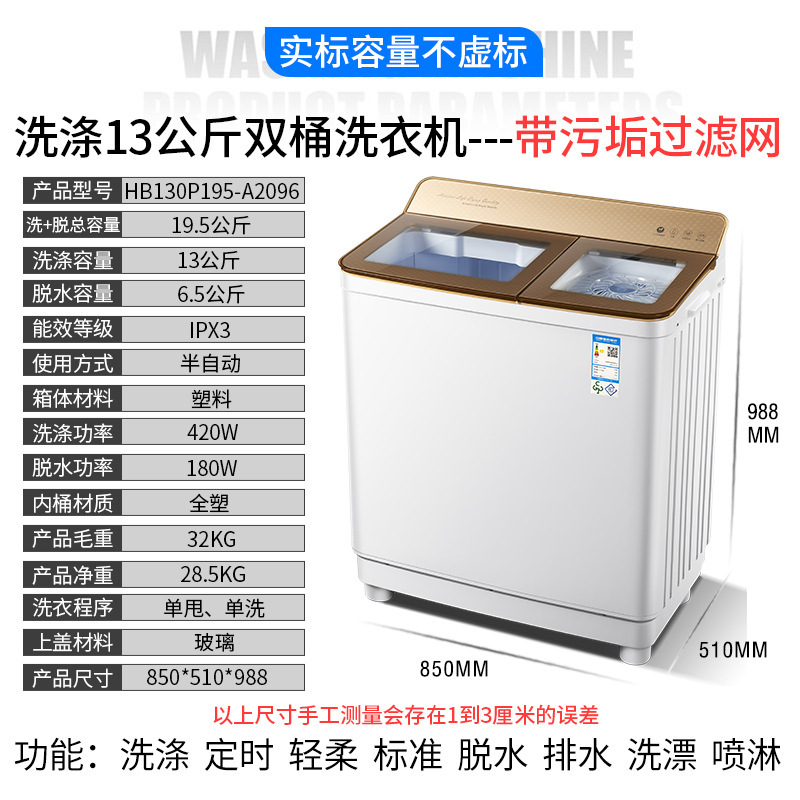 • 반자동 세탁기 HB130P195-A20966 투명감색