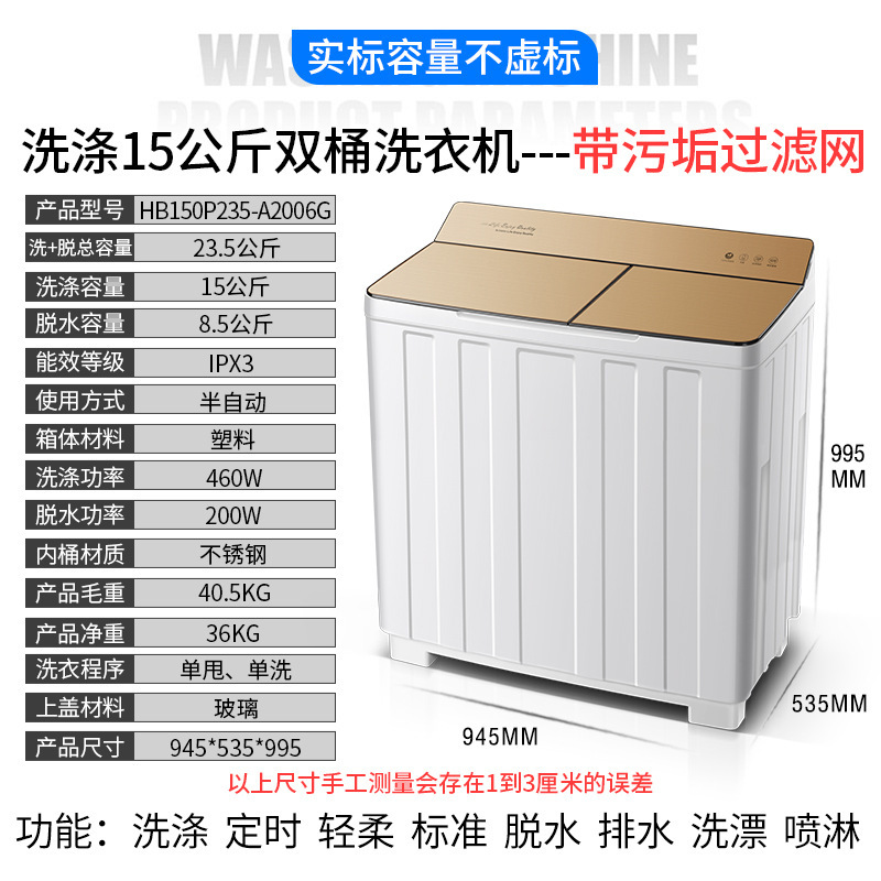 • 반자동 세탁기 HB150P235-A2006 컬러 패턴 골드