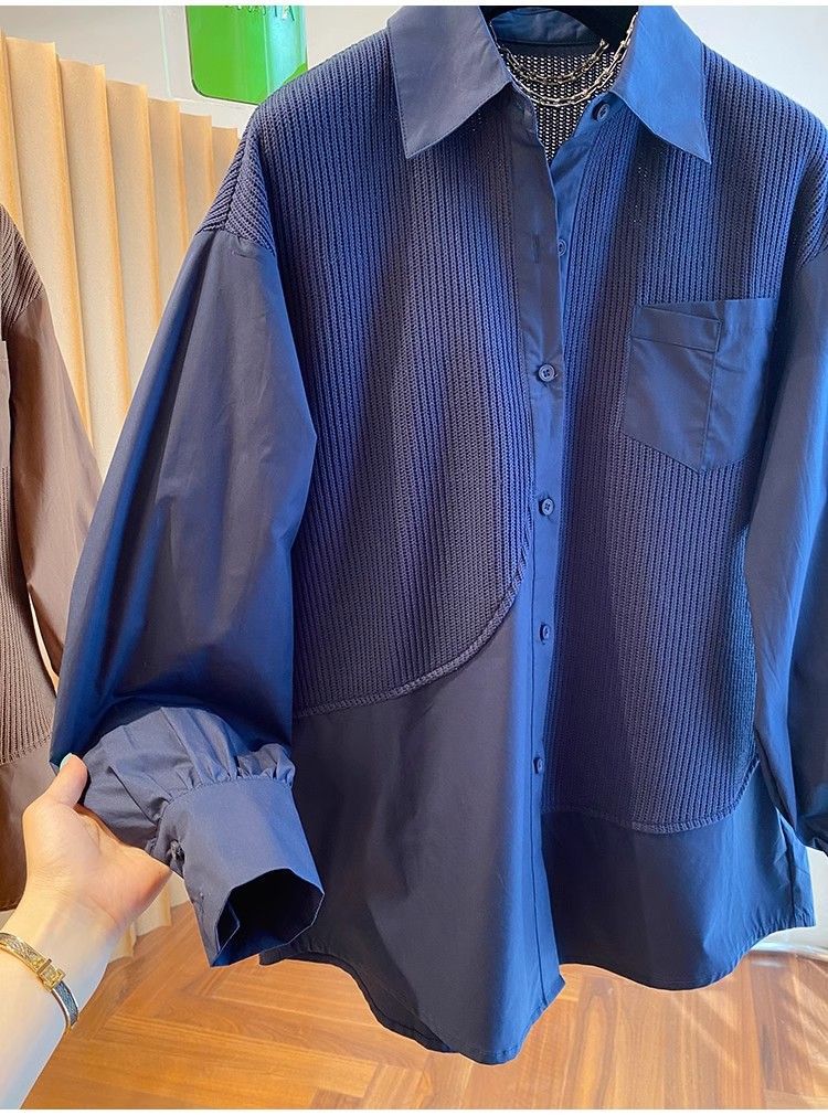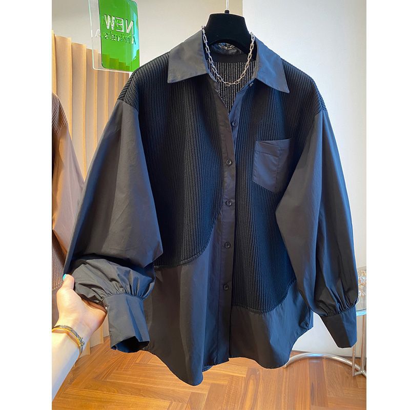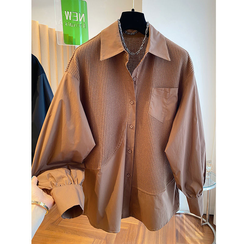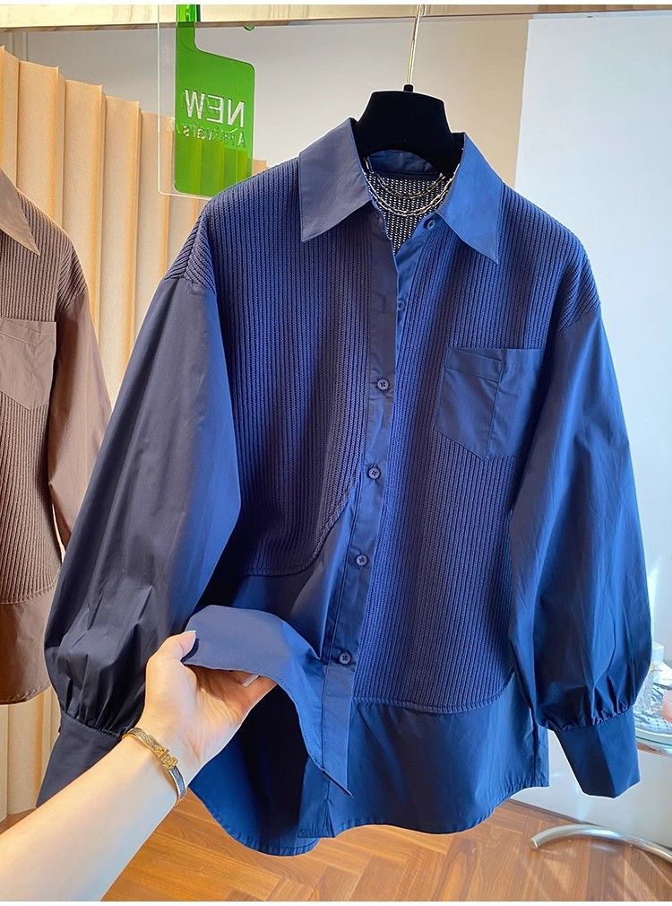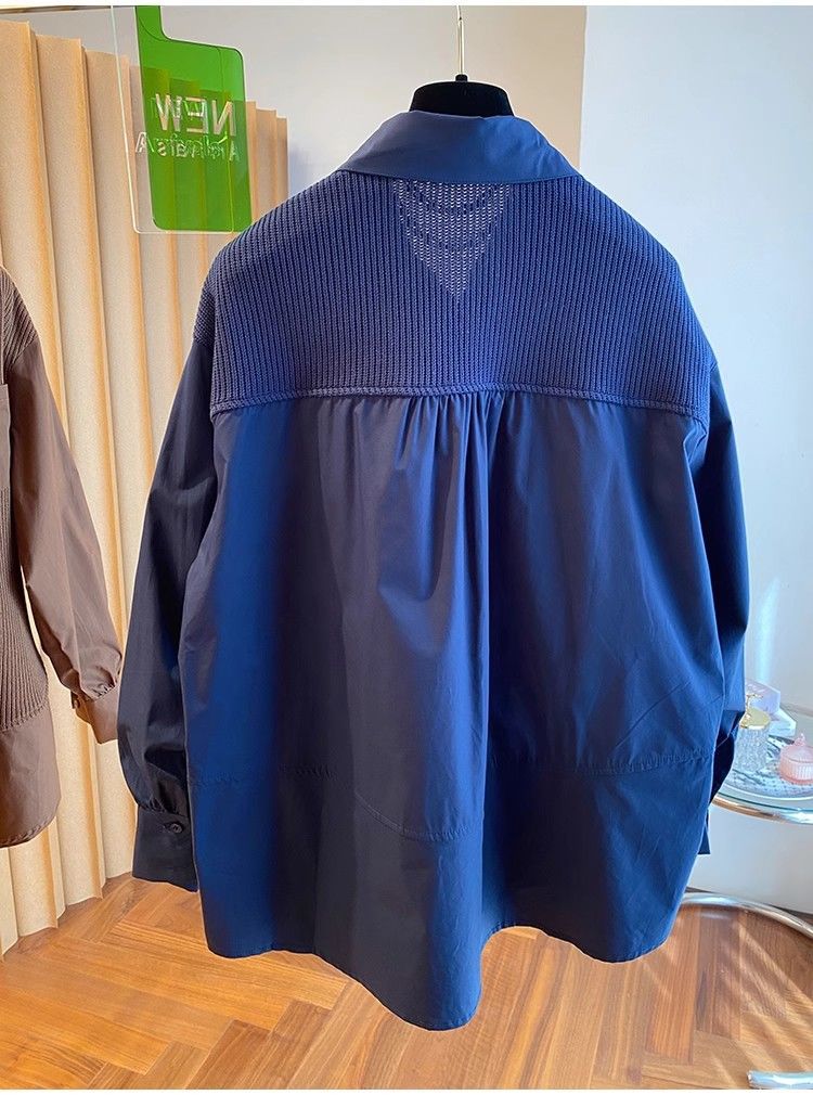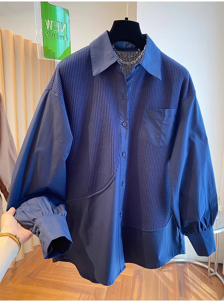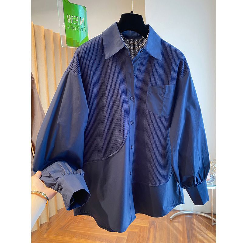 2025 봄과 가을 새로운 플러스 사이즈 뚱뚱한 자매 디자인 센스 패션 스티칭 조커 게으른 스타일 우아한 셔츠스토어 가기